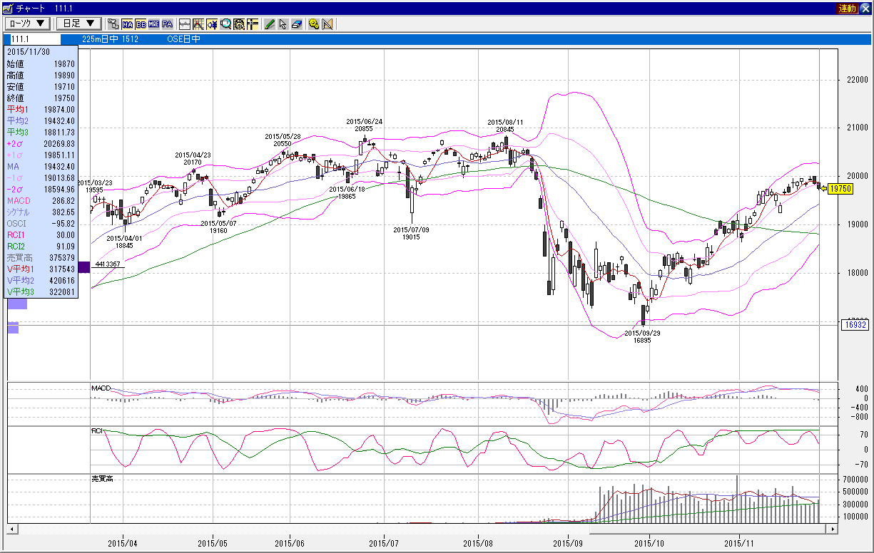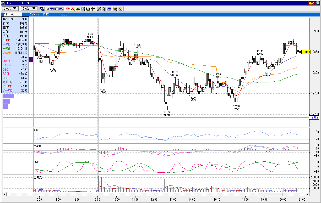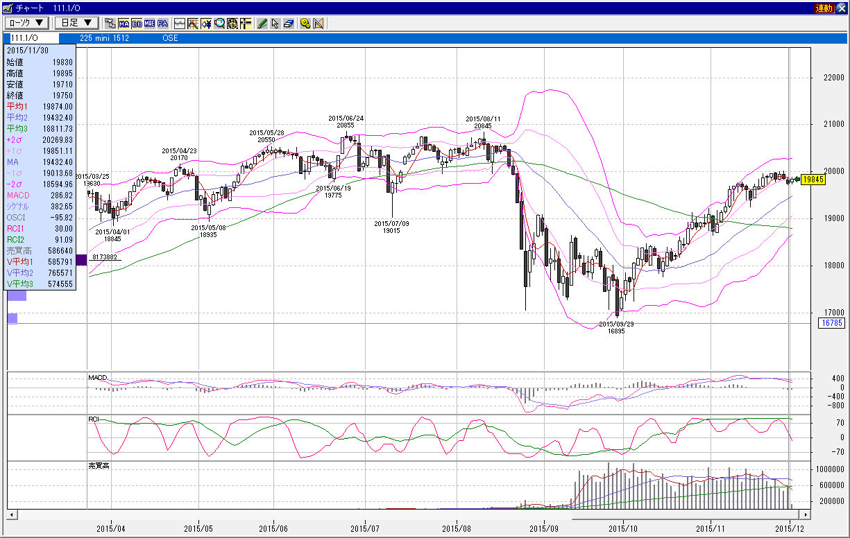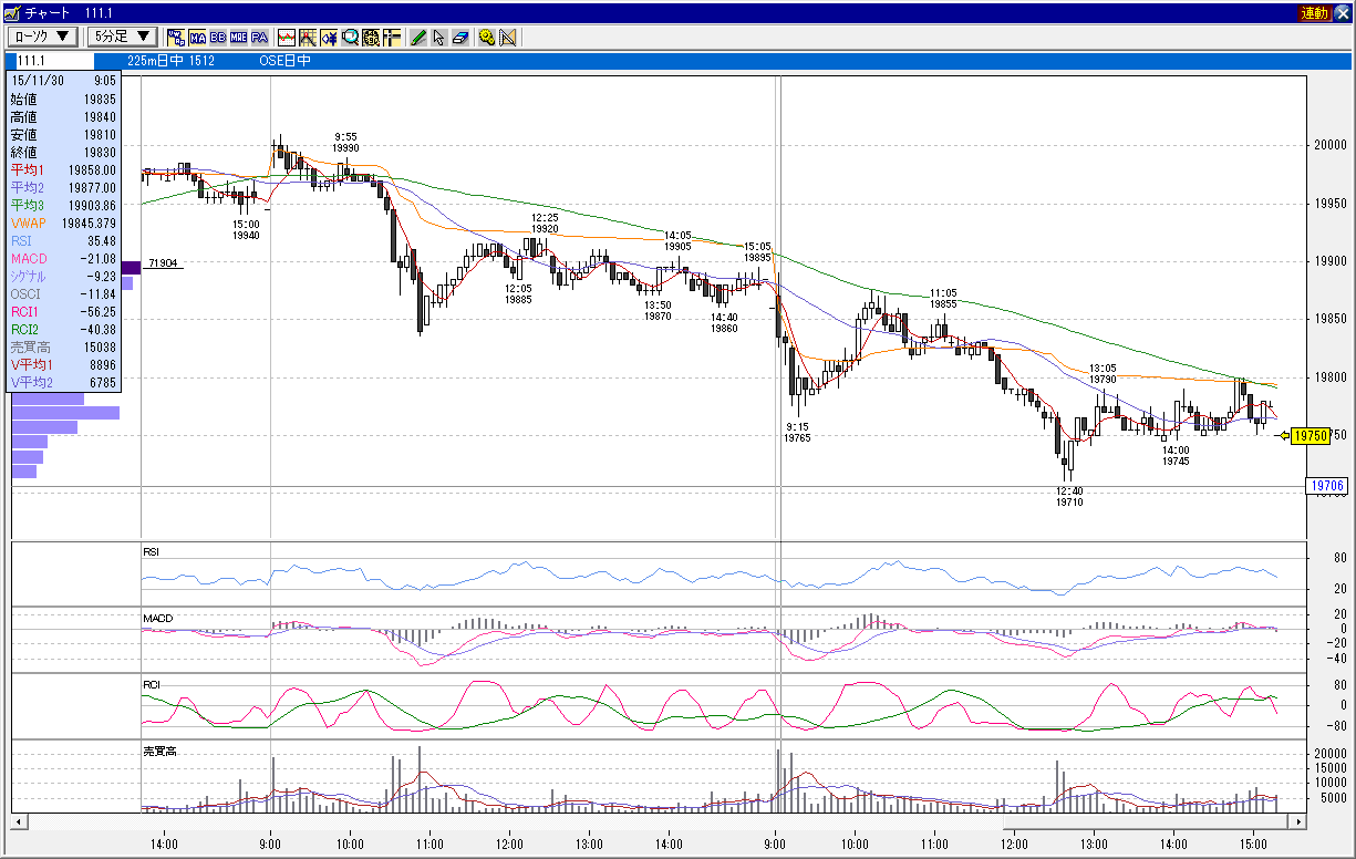 日経225mini 12月限 2015年11月30日 (前場下降パターン)