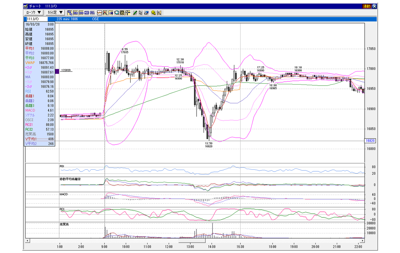 日経225mini 6月限 2016年3月28日 小幅GU、下昇パターン(100円以下前後GU)