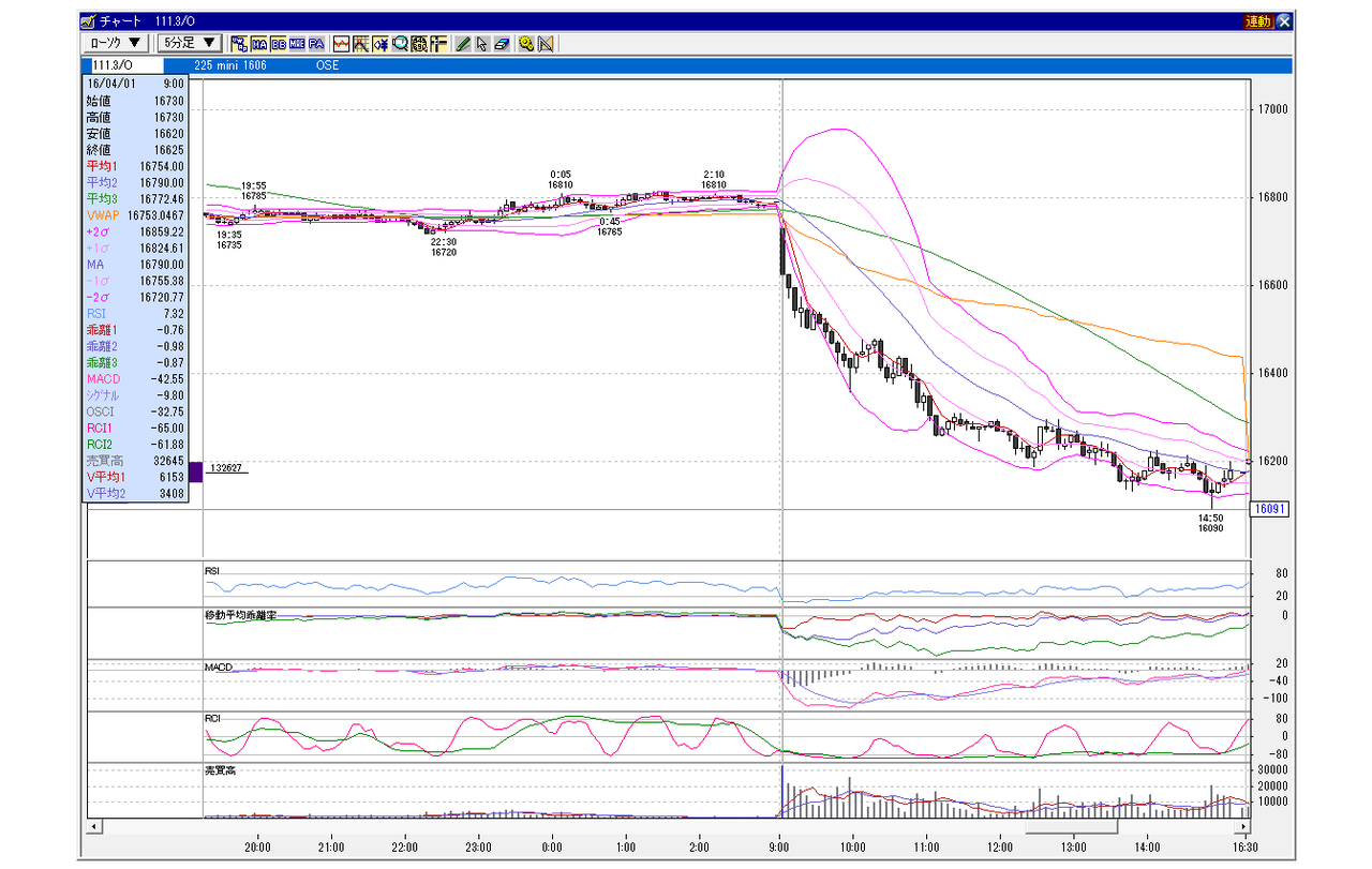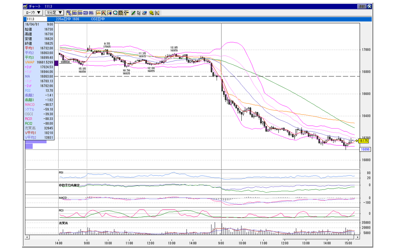 日経225mini 6月限 2016年4月1日 小幅GD、下昇パターン(100円以下前後GD)