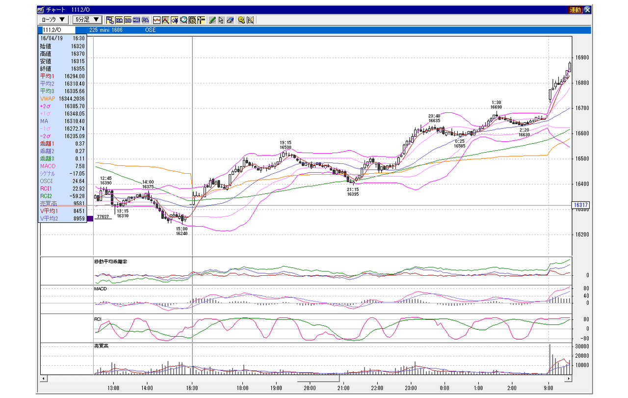 日経225mini 6月限 2016年4月18日 上昇パターン 夜間