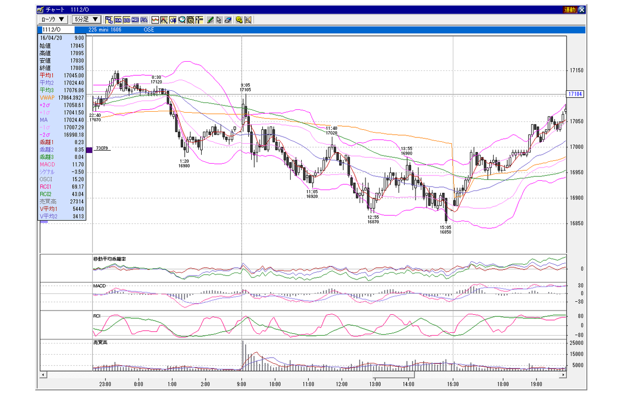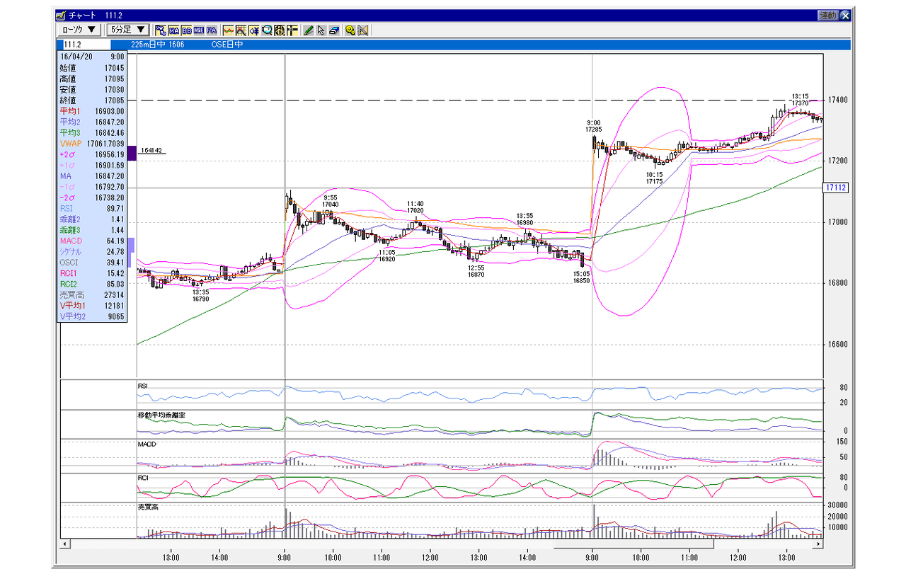 日経225mini 6月限 2016年4月20日 小幅GU、下昇パターン(100円以下前後GU) レンジ