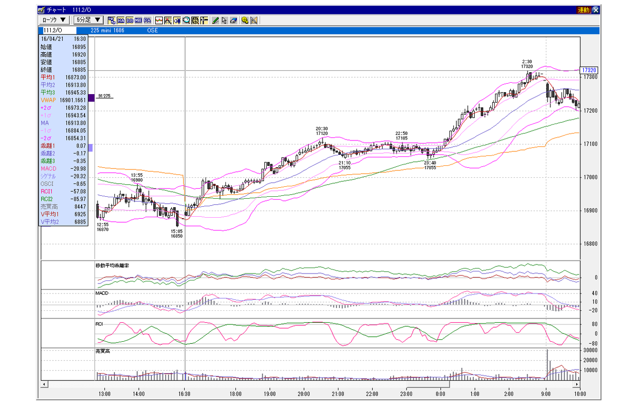 日経225mini 6月限 2016年4月20日 上昇パターン 夜間
