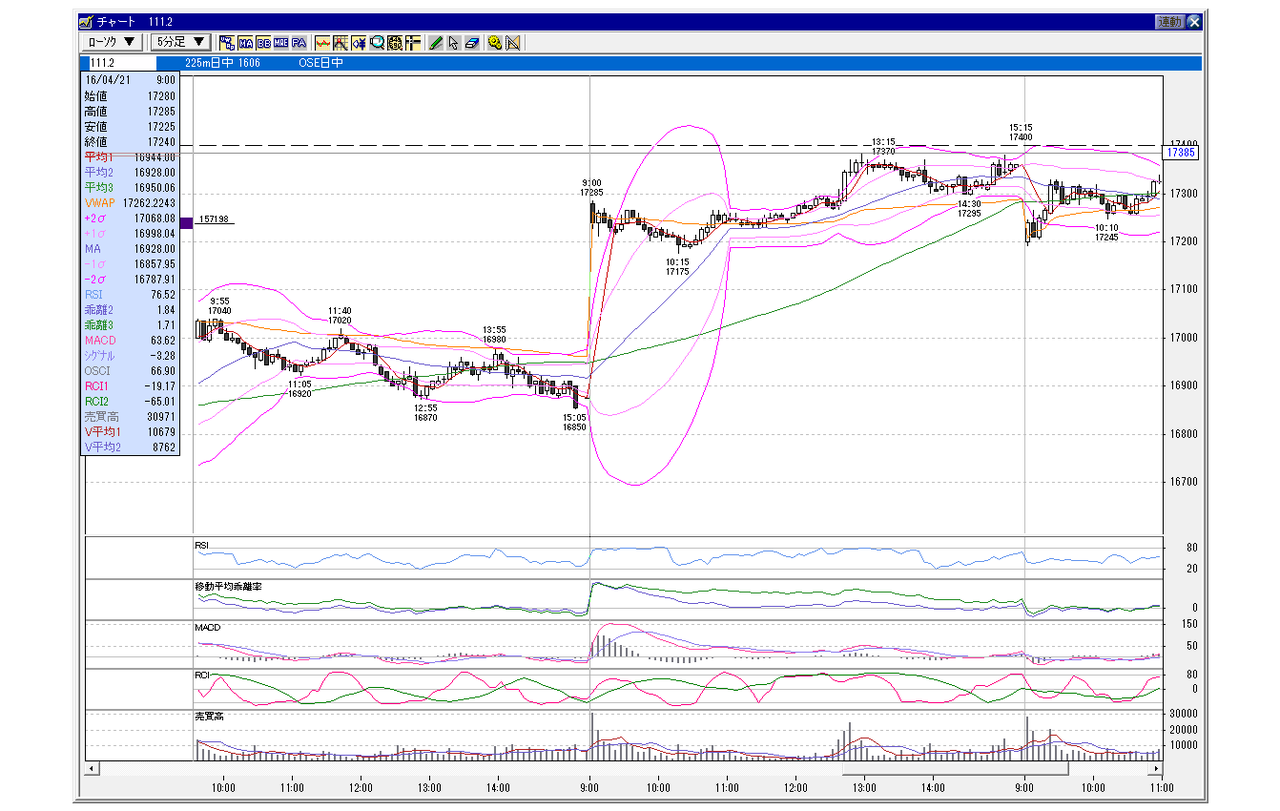 日経225先物 5分足チャート