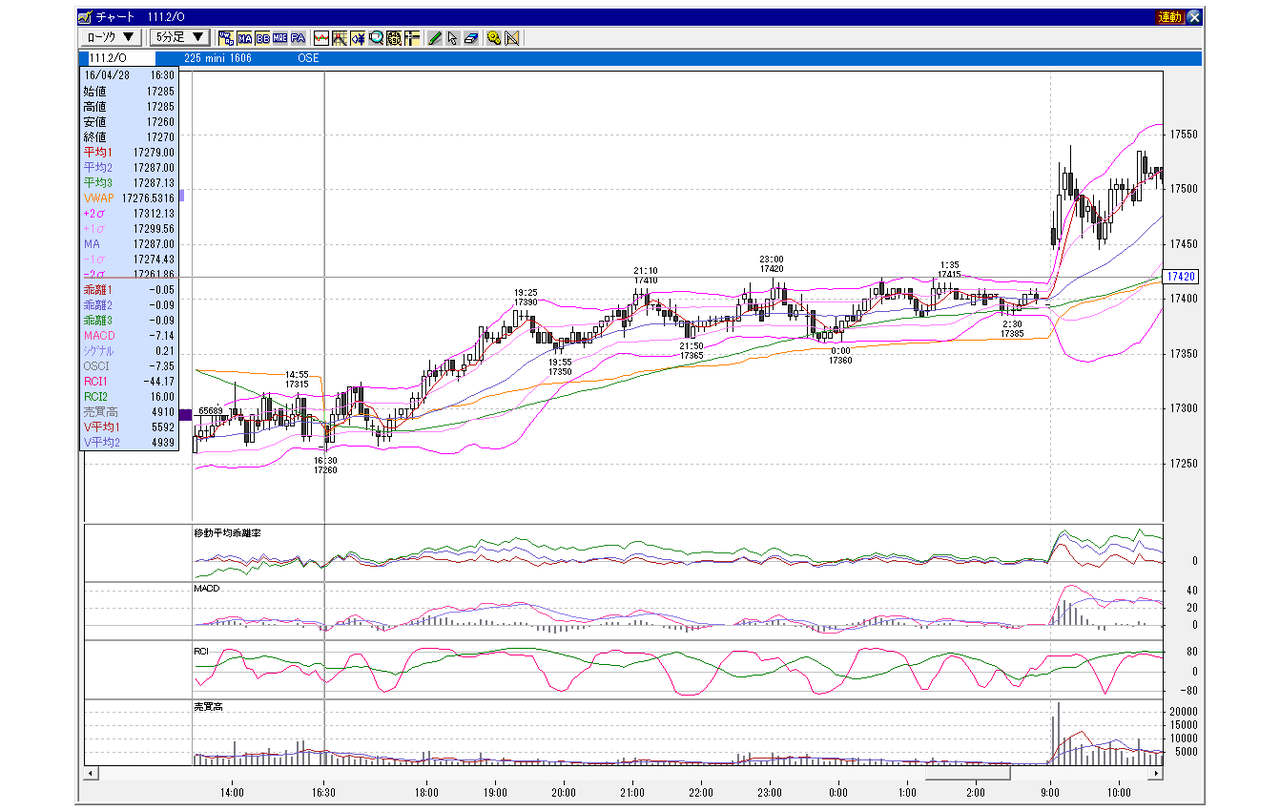 日経225mini 6月限 2016年4月27日 上昇パターン 夜間