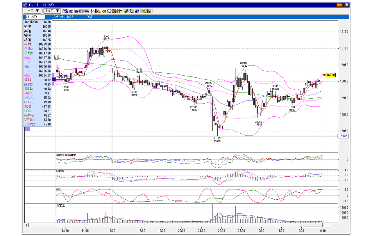 日経225mini 6月限 2016年5月6日 夜間 米国雇用統計 イベント絡み