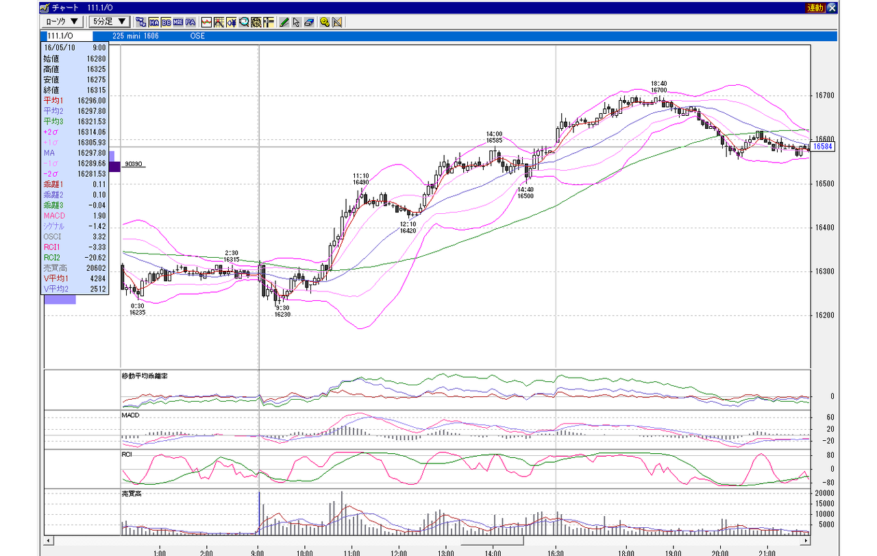 日経225mini 6月限 2016年5月10日 小幅GD、上昇パターン(100円以下前後GD)