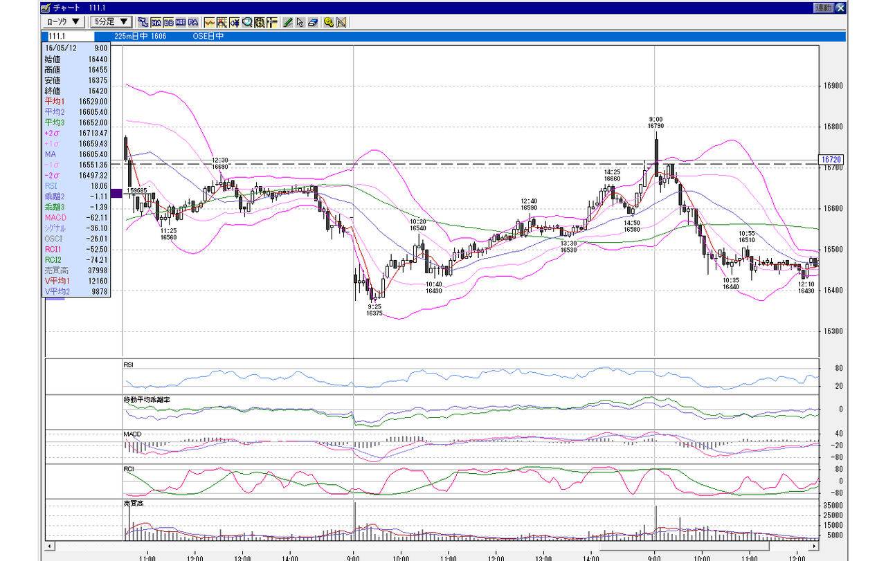 日経225mini 6月限 2016年5月12日 小幅GD、上昇パターン(100円以下前後GD)