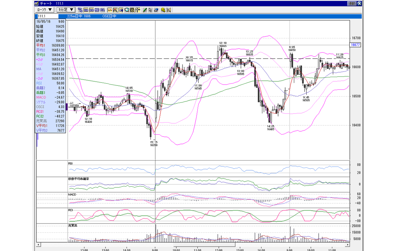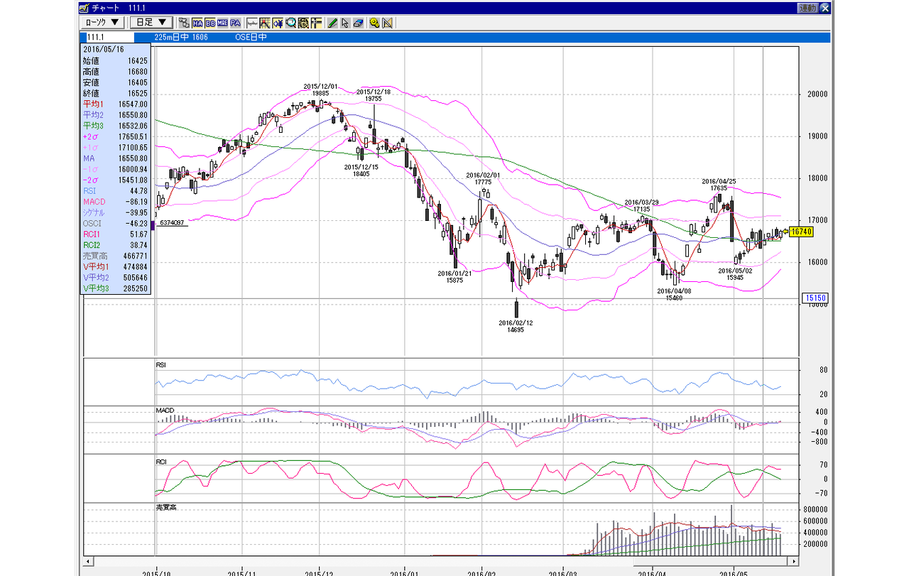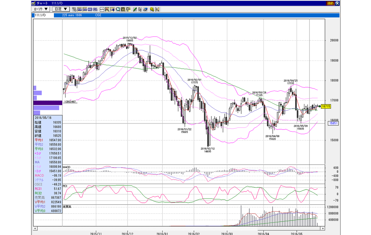 日経225mini 6月限 2016年5月16日 小幅GU、上昇パターン(100円以下前後GU)