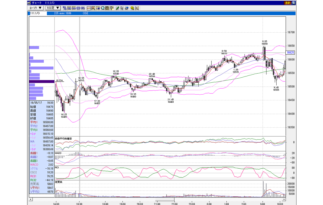 日経225mini 6月限 2016年5月16日 上昇パターン 夜間