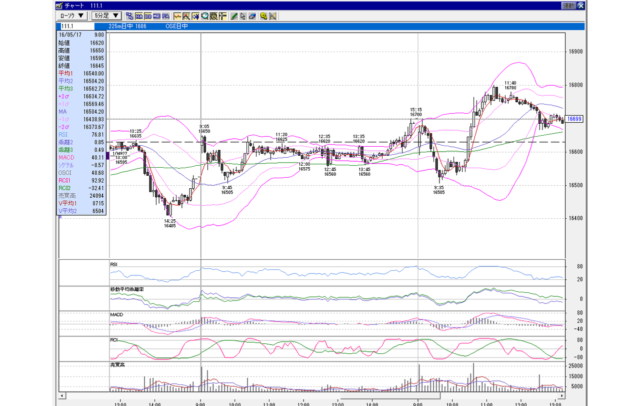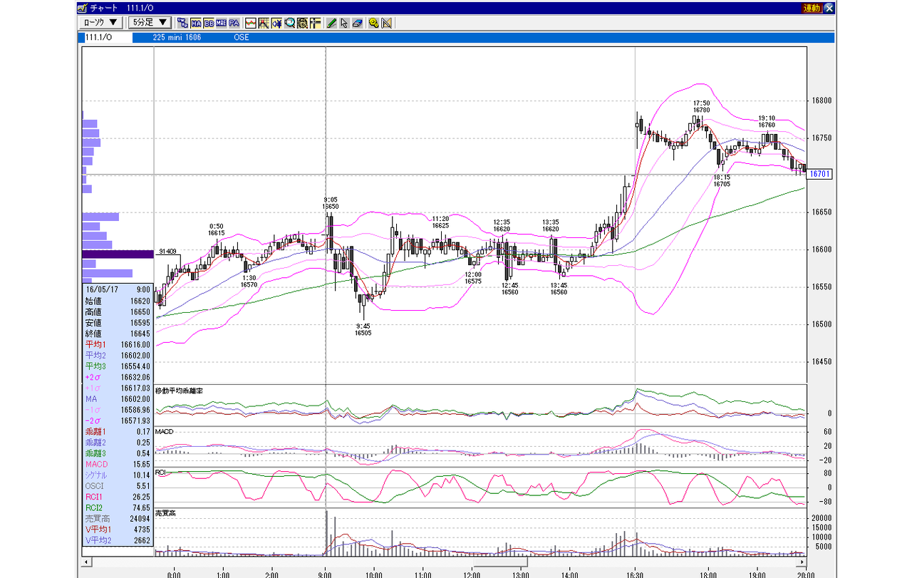 日経225mini 6月限 2016年5月17日 小幅GU、上昇パターン(100円以下前後GU) レンジ