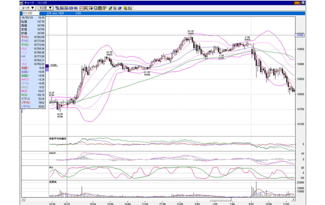 日経225mini 6月限 2016年5月25日 上昇パターン 夜間