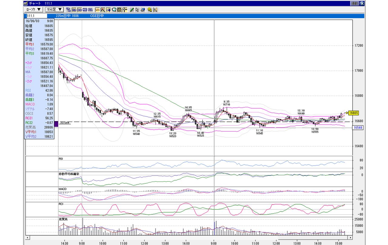 日経225mini 6月限 2016年6月3日 小幅GU、上昇パターン(100円以下前後GU)
