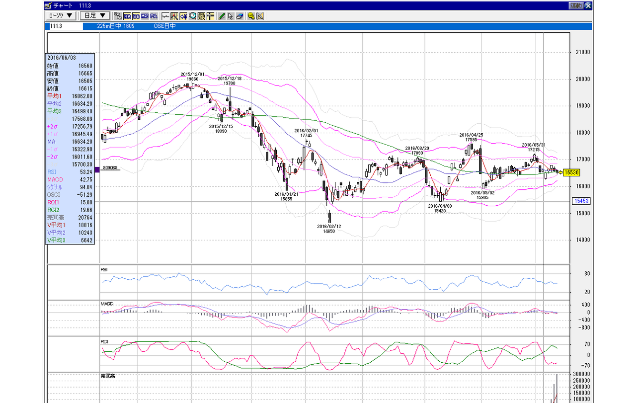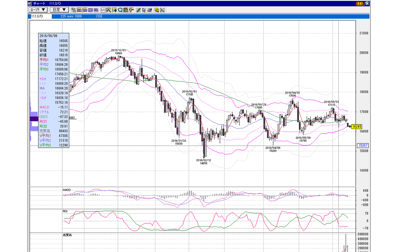 日経225mini 9月限 2016年6月6日 GD、上昇パターン(200円以下前後GD) 2016年6月6日 balenouser 未分類 雇用統計で38000人と言う記録的に悪い数字が出た翌日。日中チャートでは大幅GDスタートで上昇した。