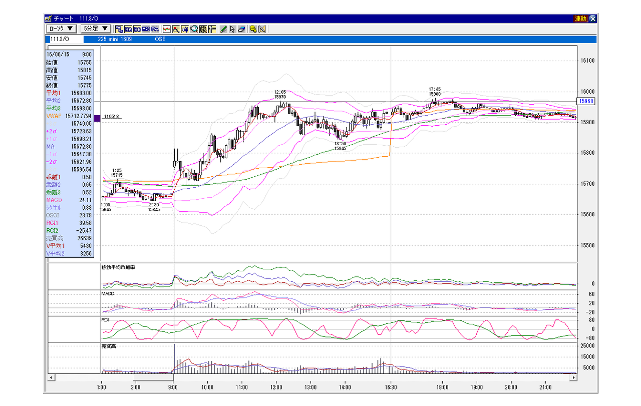 日経225先物 5分足チャート