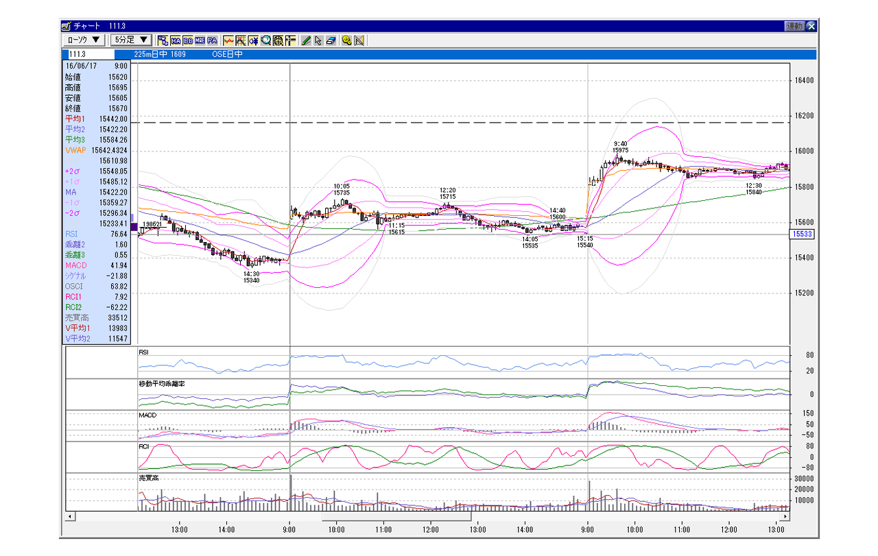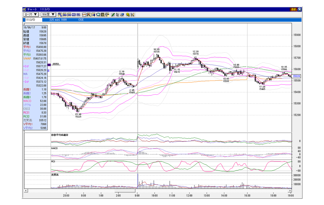 日経225先物 5分足チャート