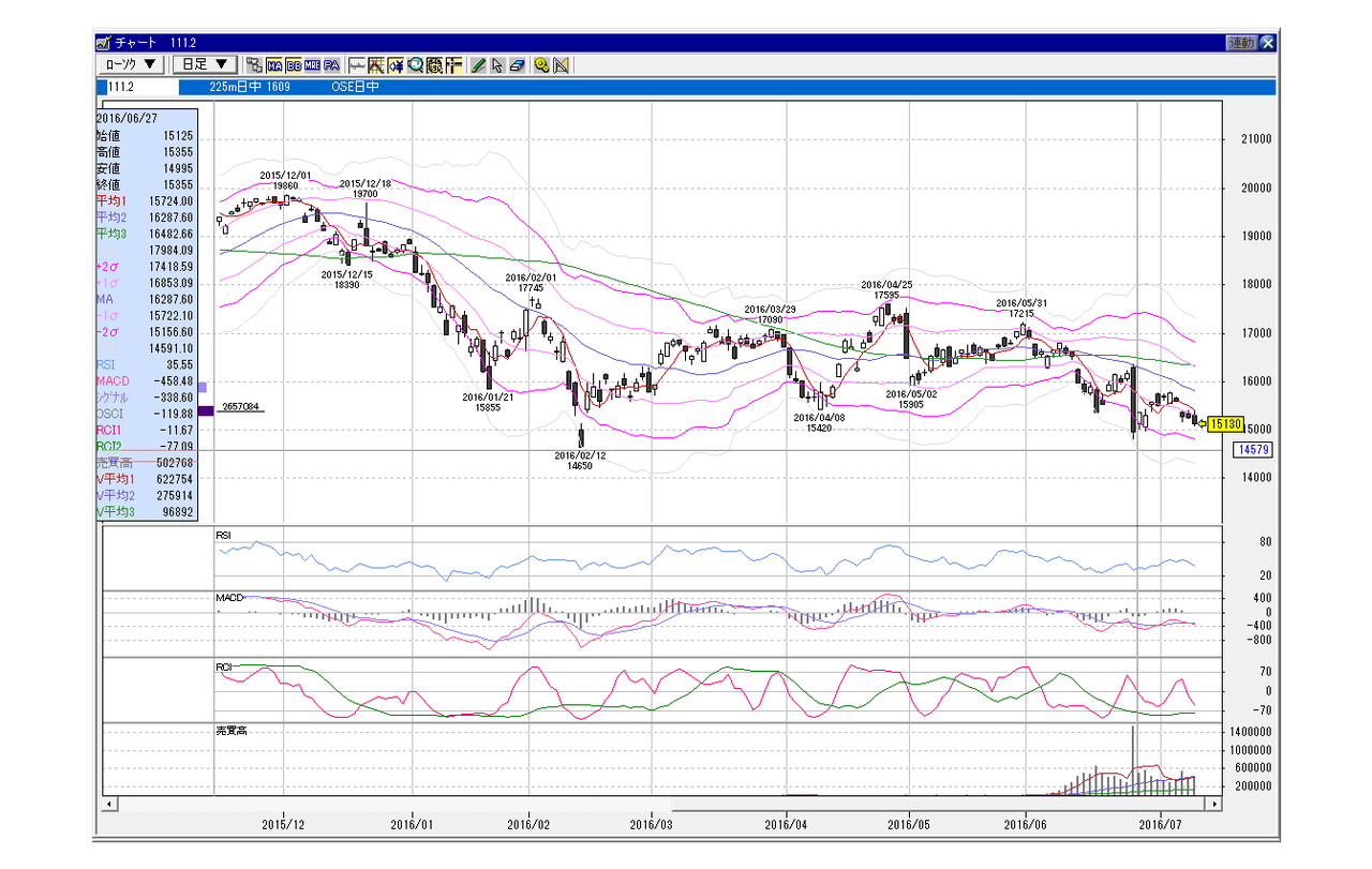 日経225mini 9月限 2016年6月27日 GD、上昇パターン(200円以下前後GD)