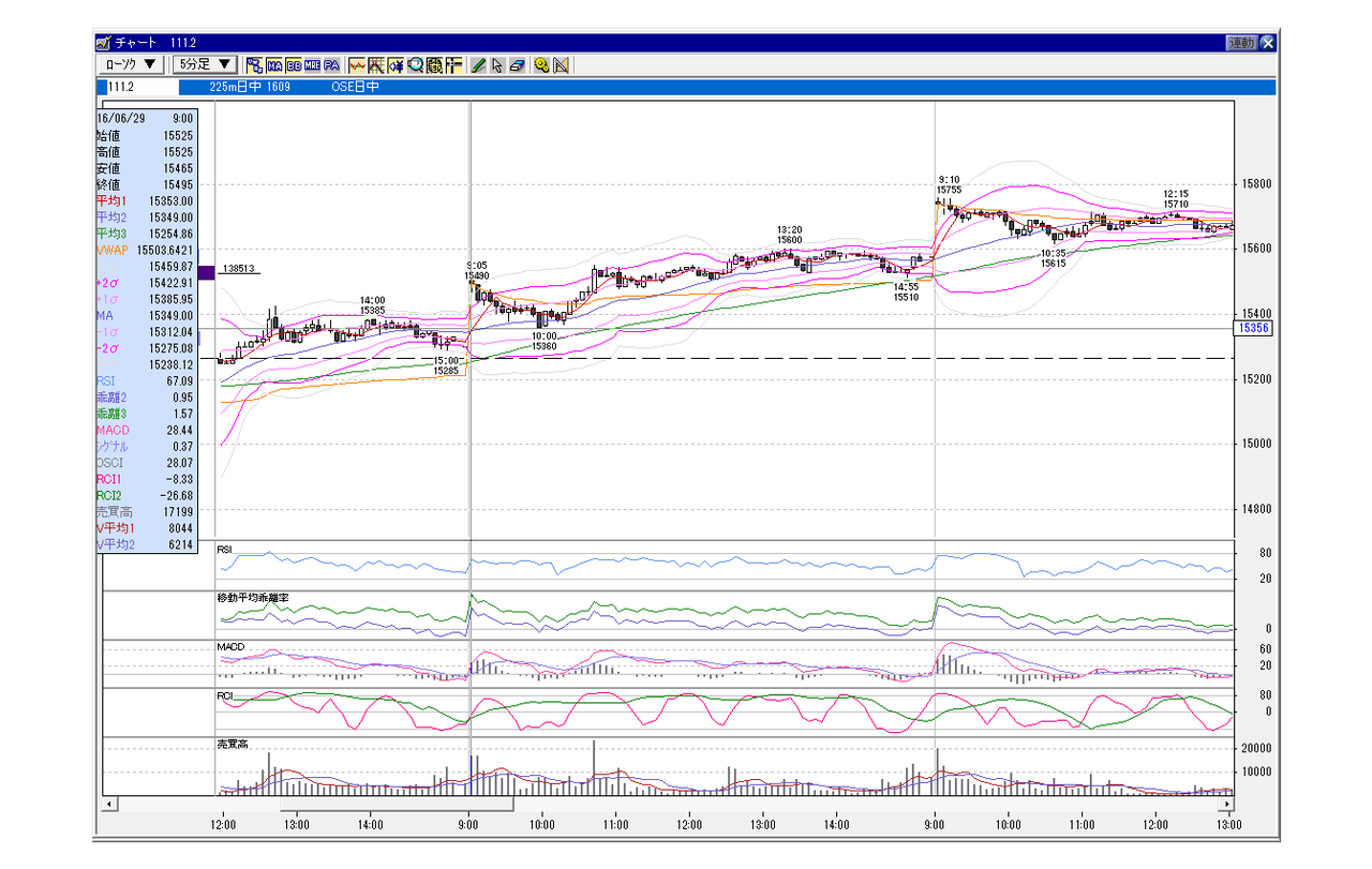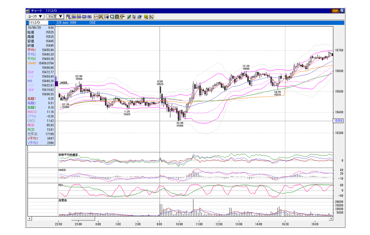 日経225mini 9月限 2016年6月29日 小幅GU、上昇パターン(100円以下前後GU)上下レンジ