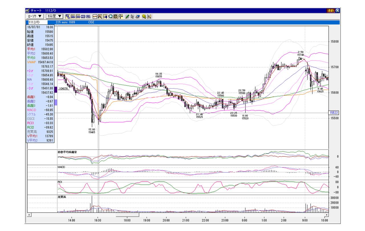 日経225mini 9月限 2016年6月30日 上昇パターン 夜間
