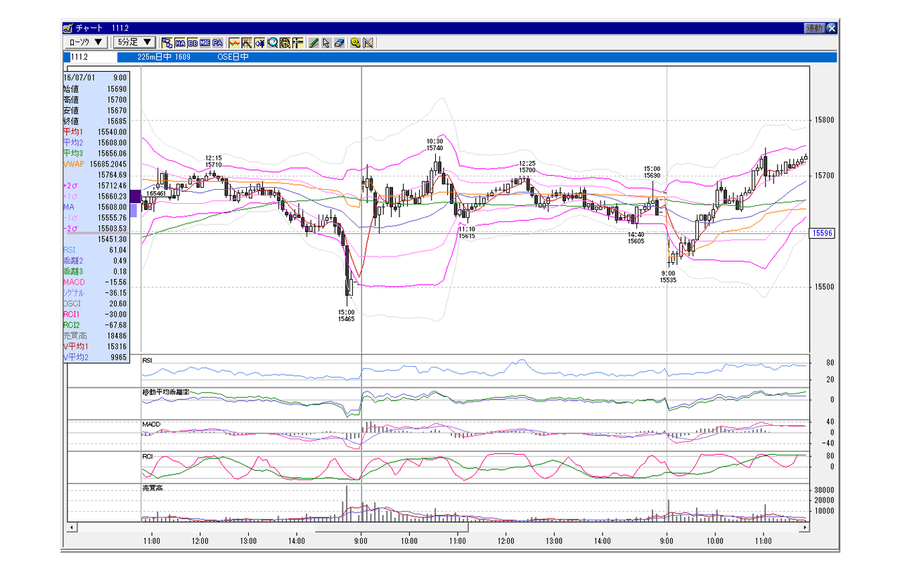 日経225先物 5分足チャート