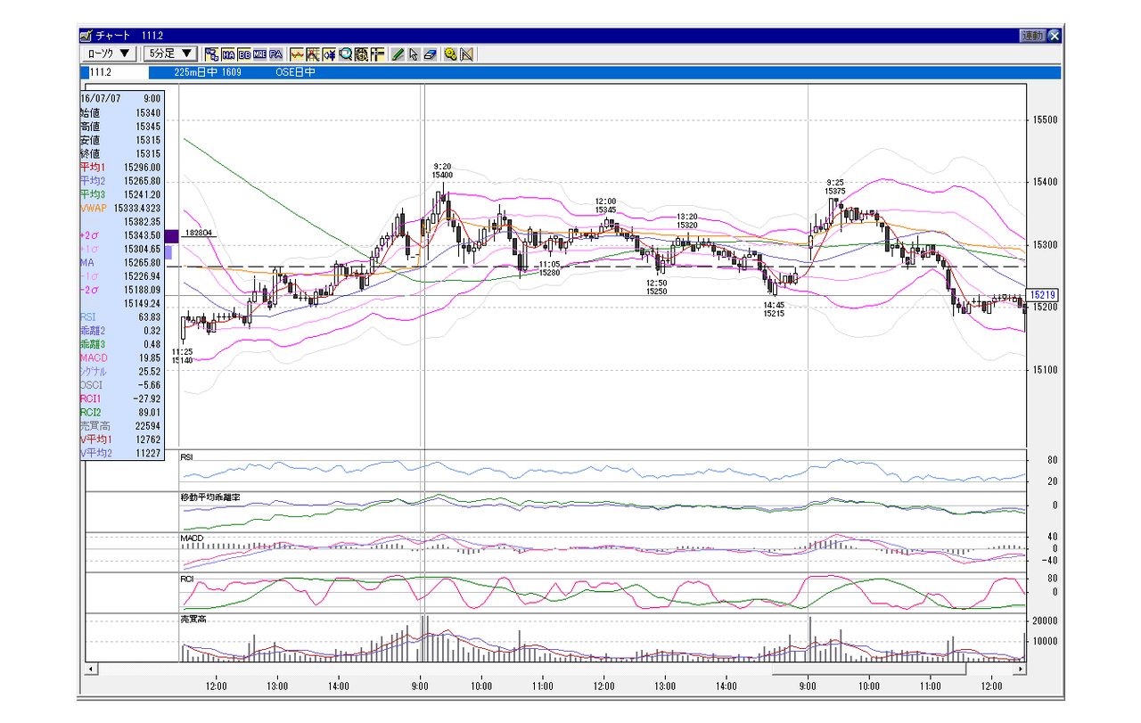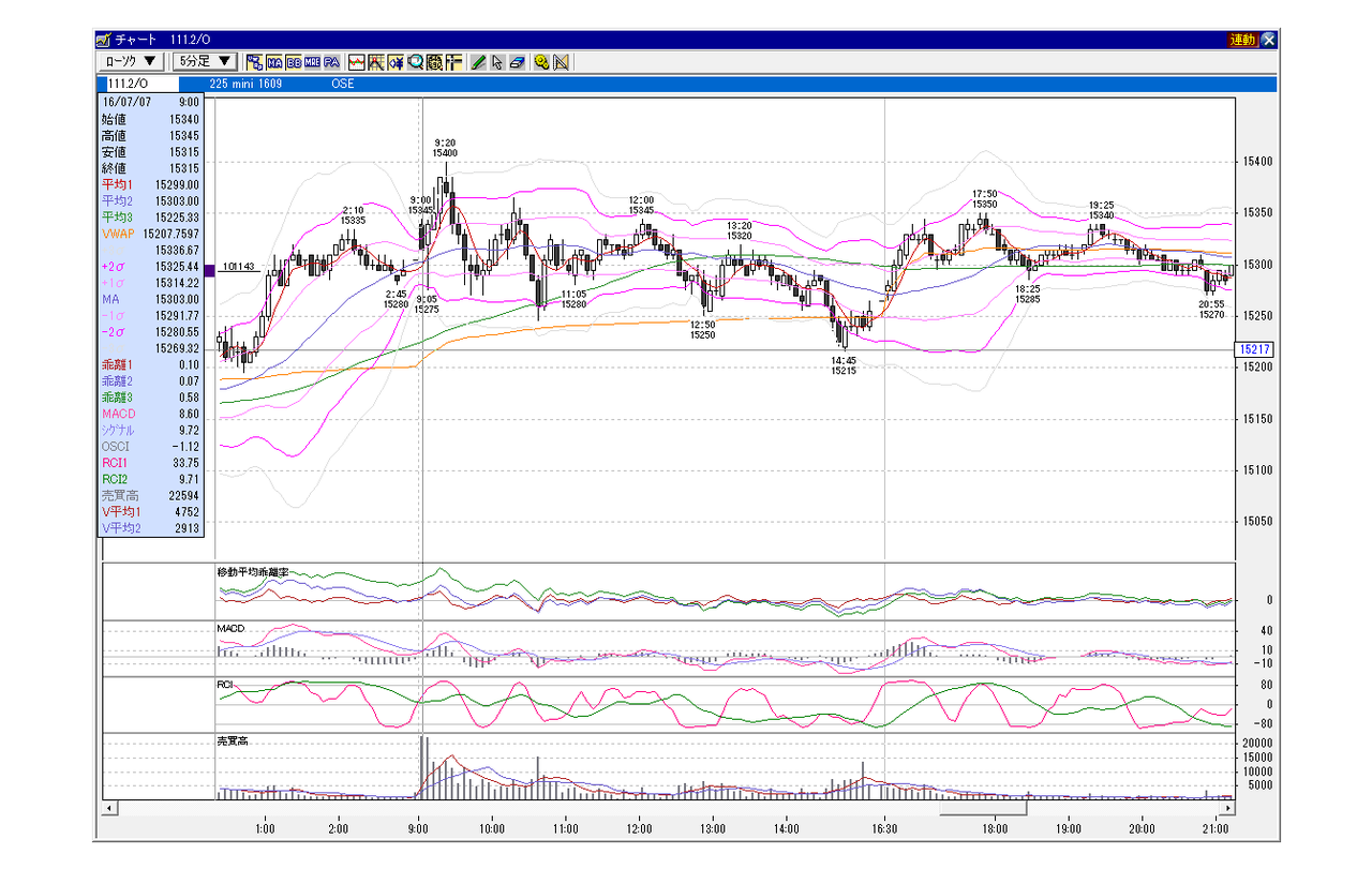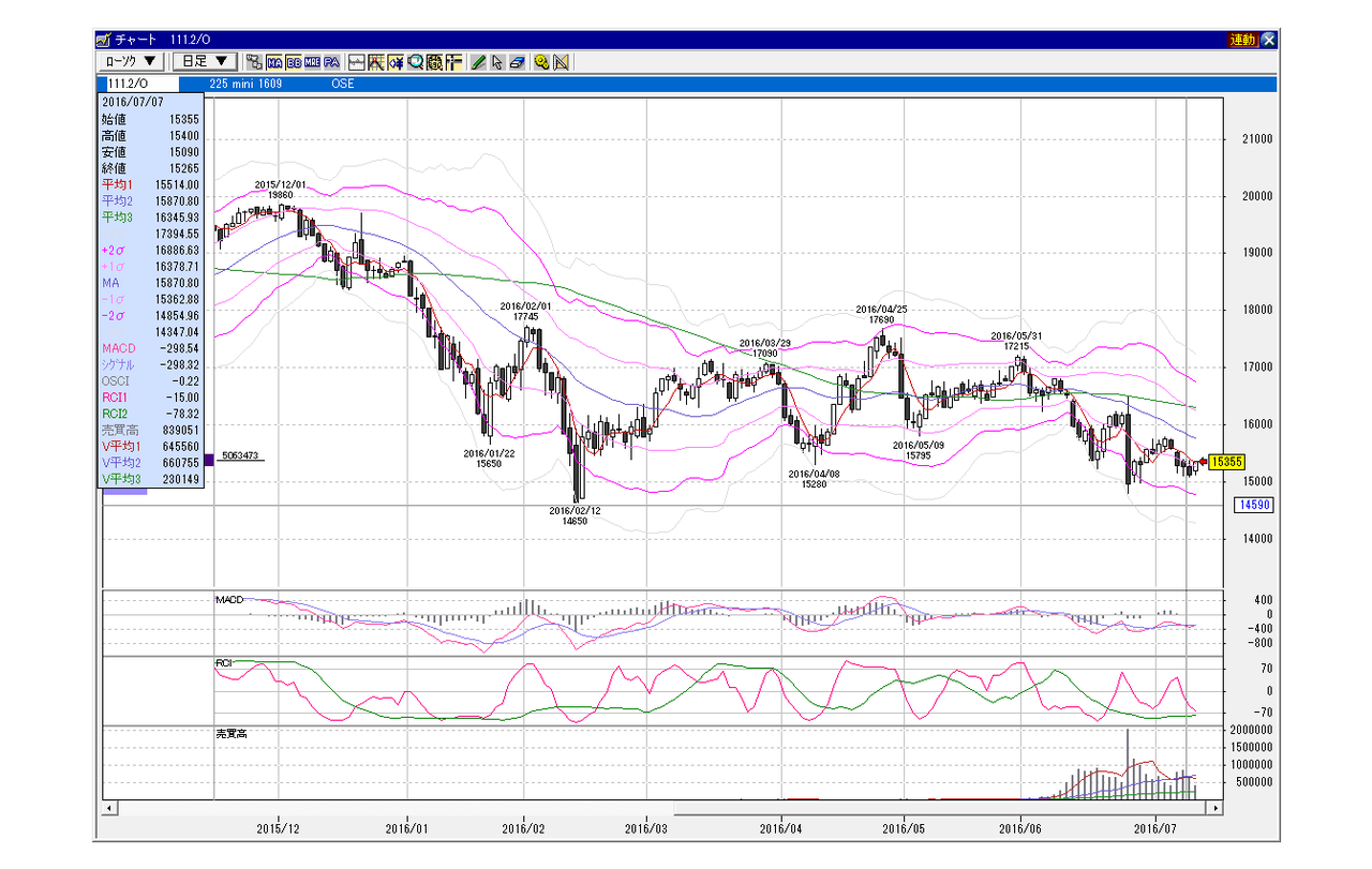 日経225mini 9月限 2016年7月7日 小幅GU、下昇パターン(100円以下前後GU)