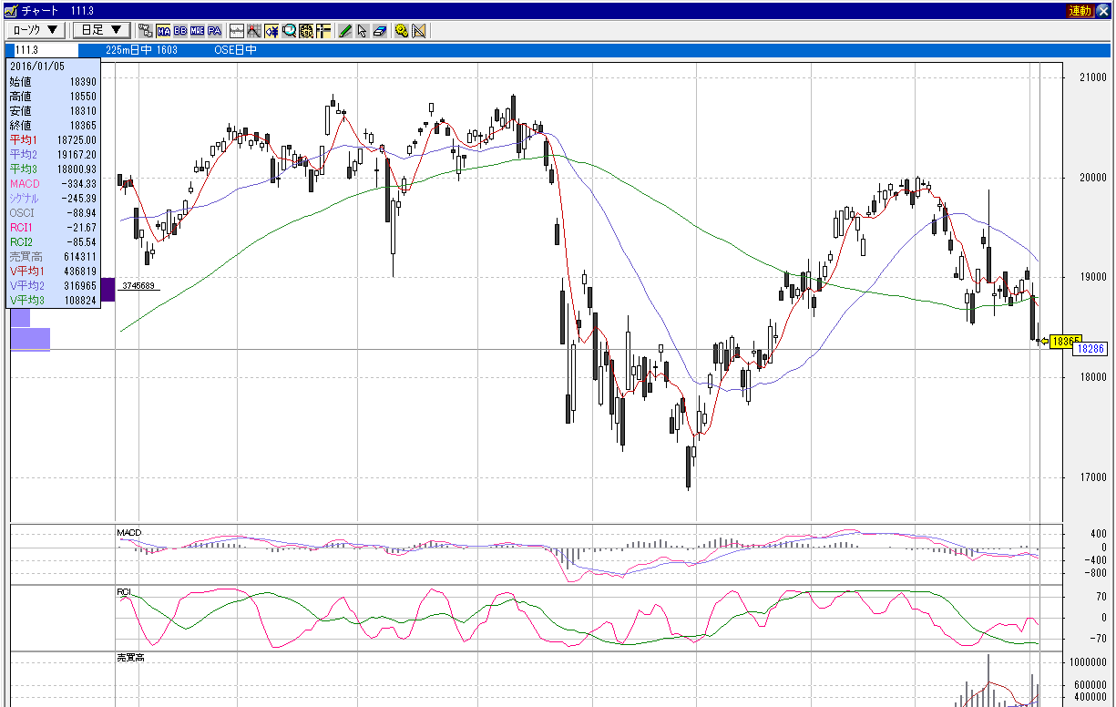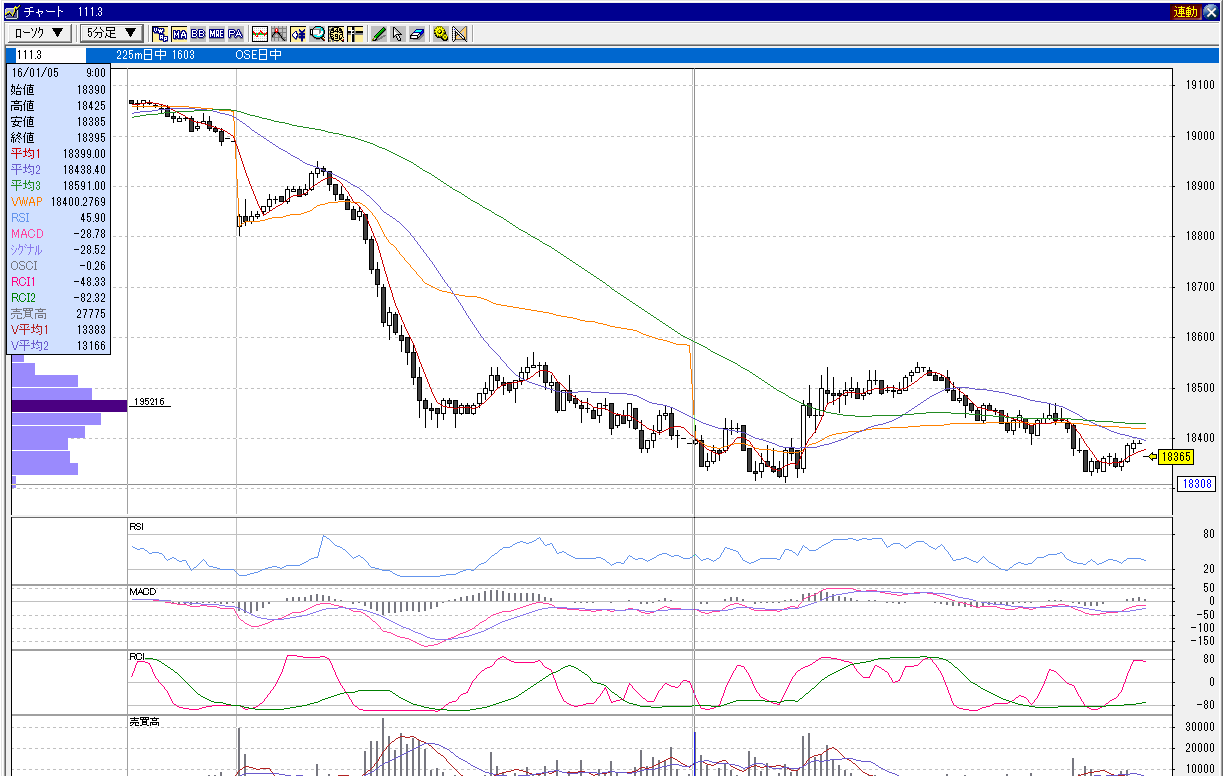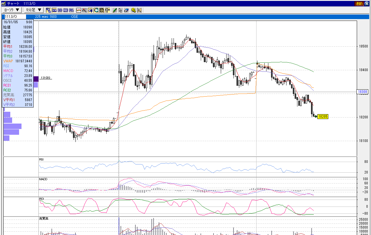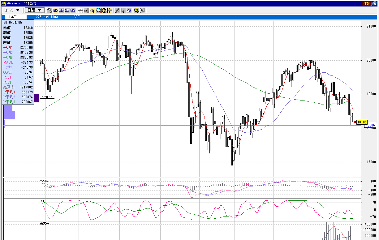 日経225mini 3月限 2016年1月5日 GU&前場上昇パターン(200円以下前後GU)