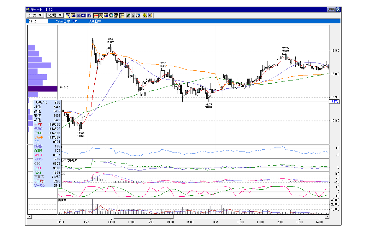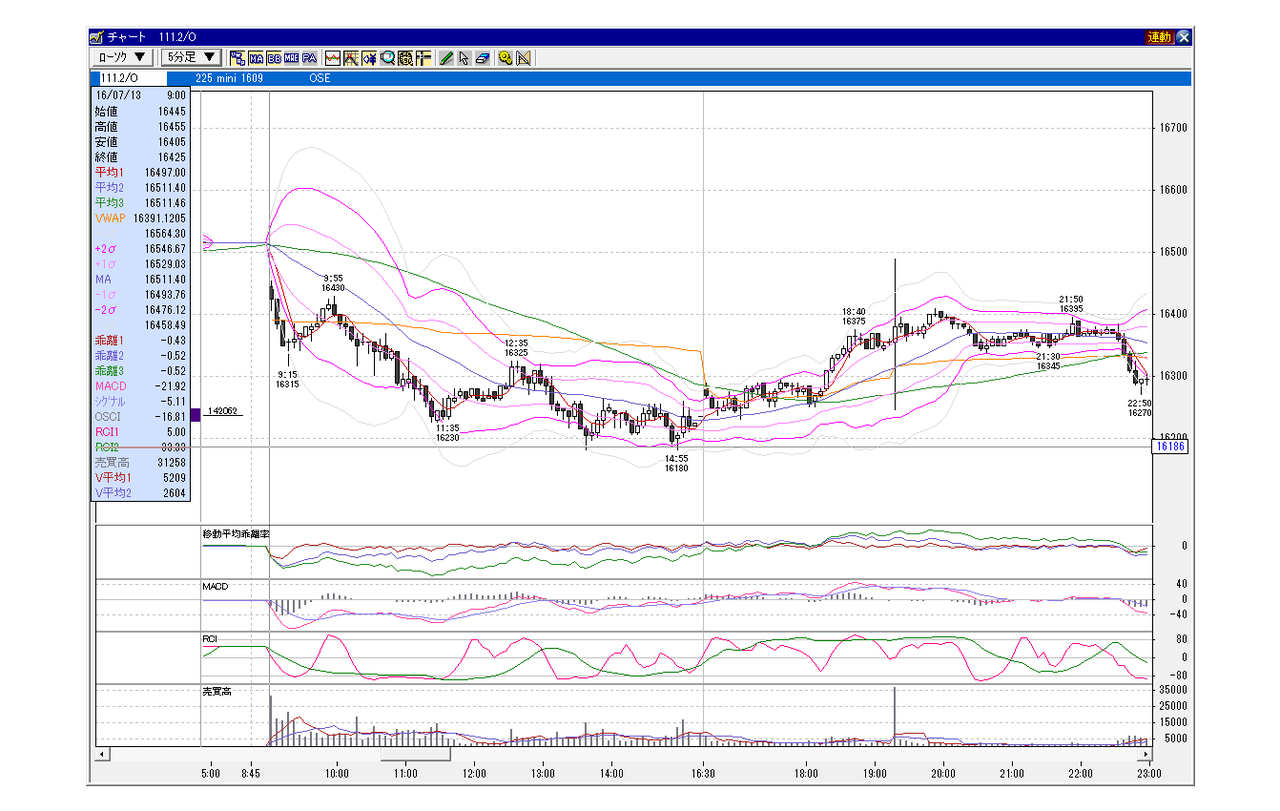日経225mini 9月限 2016年7月13日 小幅GD、下昇パターン(100円以下前後GD)レンジ