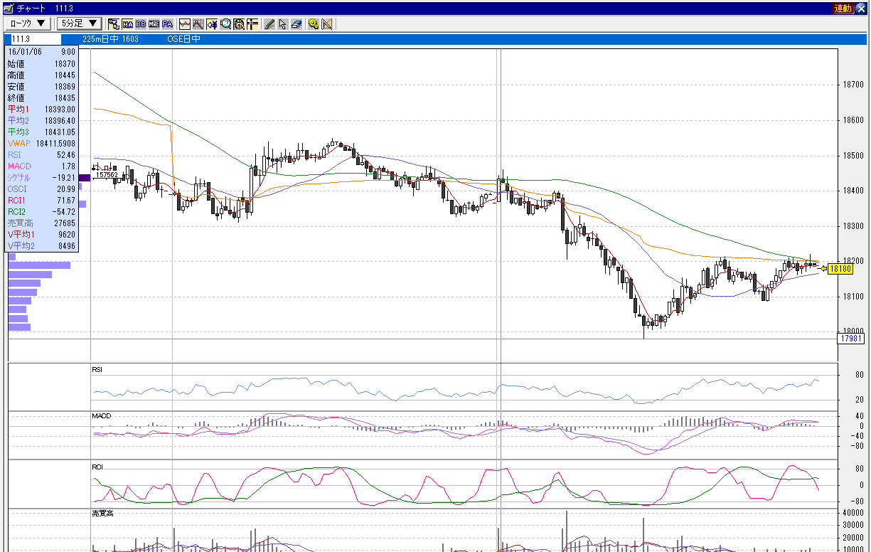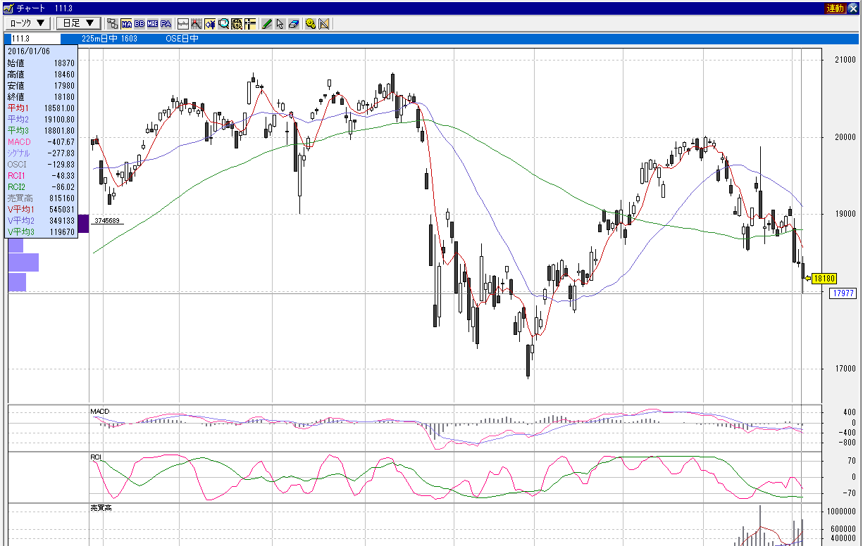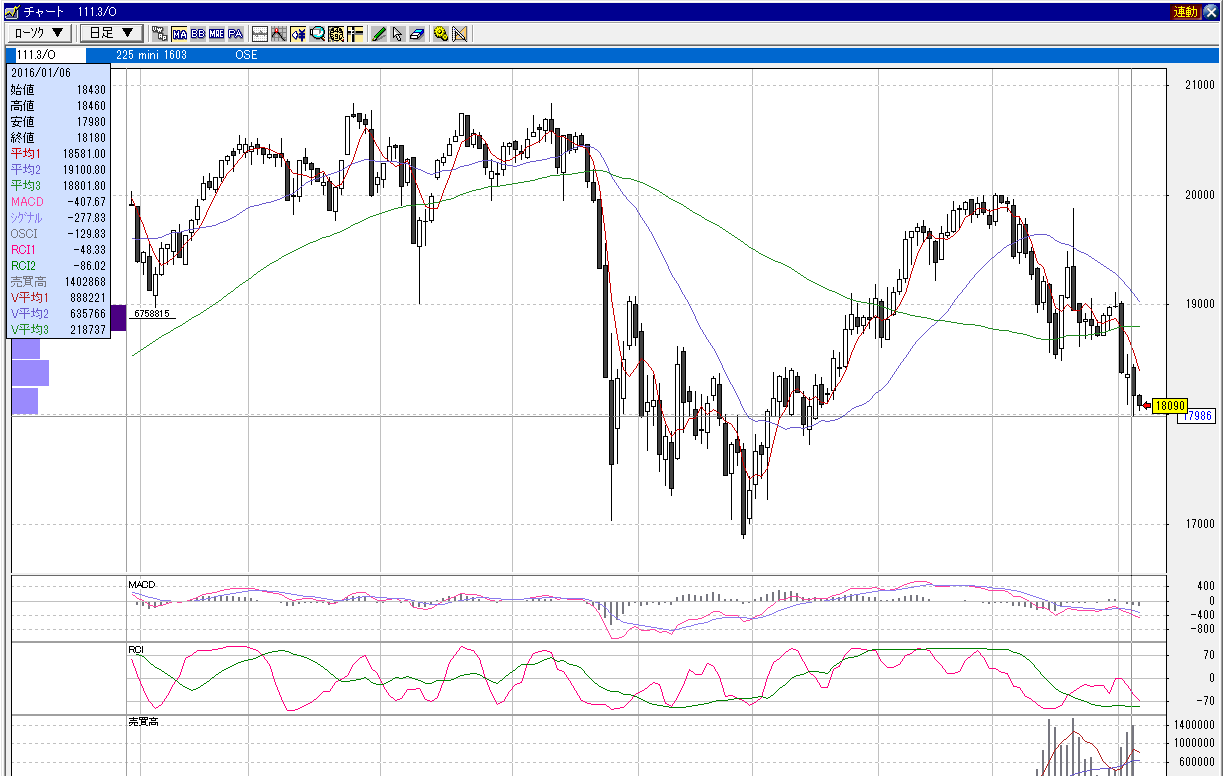 日経225mini 3月限 2016年1月6日 下昇パターン