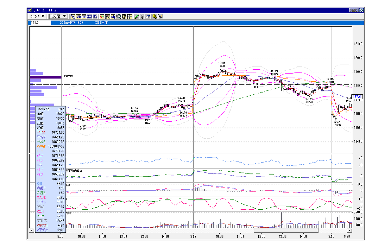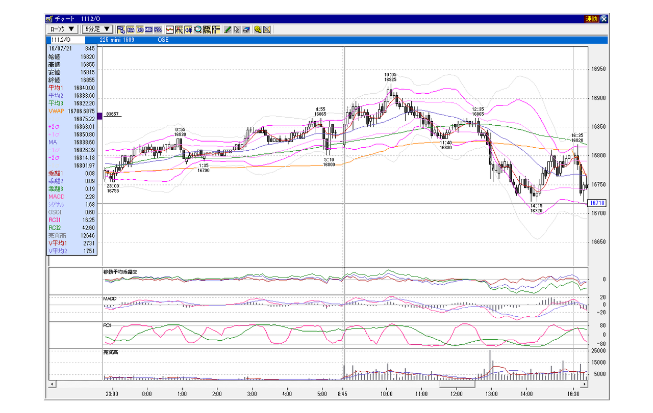 日経225mini 9月限 2016年7月21日 小幅GD、下昇パターン(100円以下前後GD) 上下レンジ