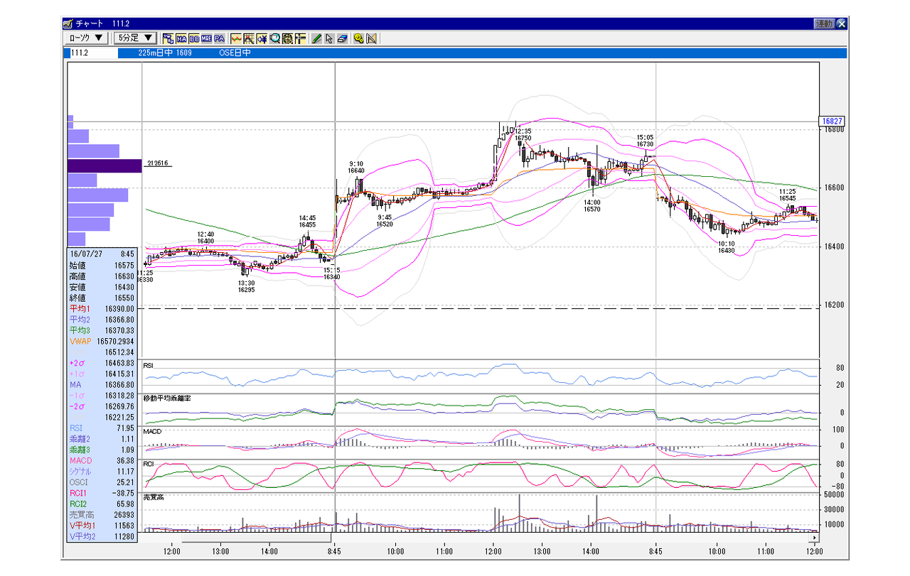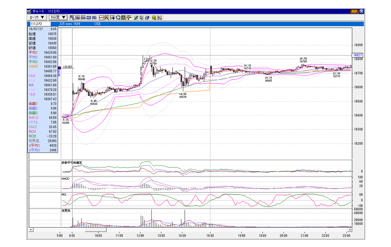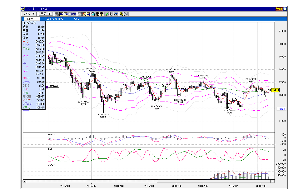 日経225mini 9月限 2016年7月27日 GU、上昇パターン(200円以下前後GU)