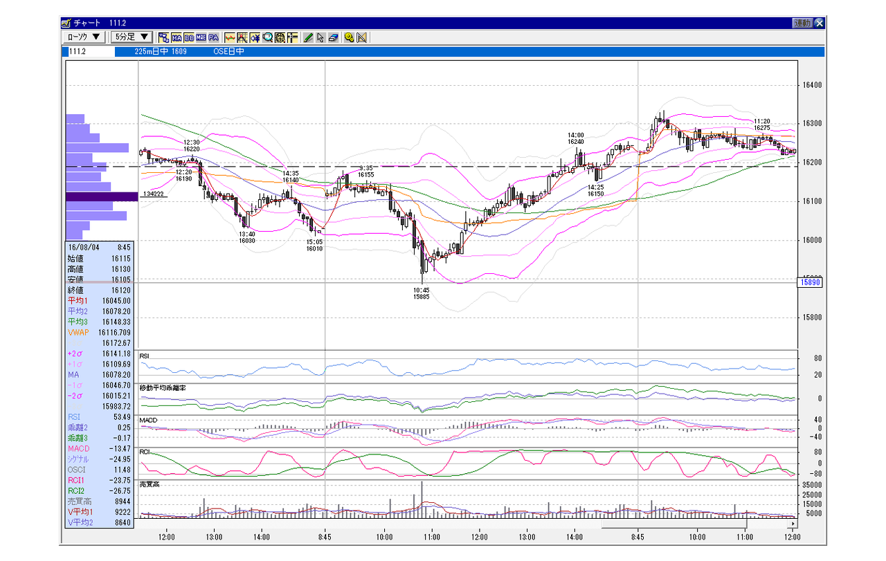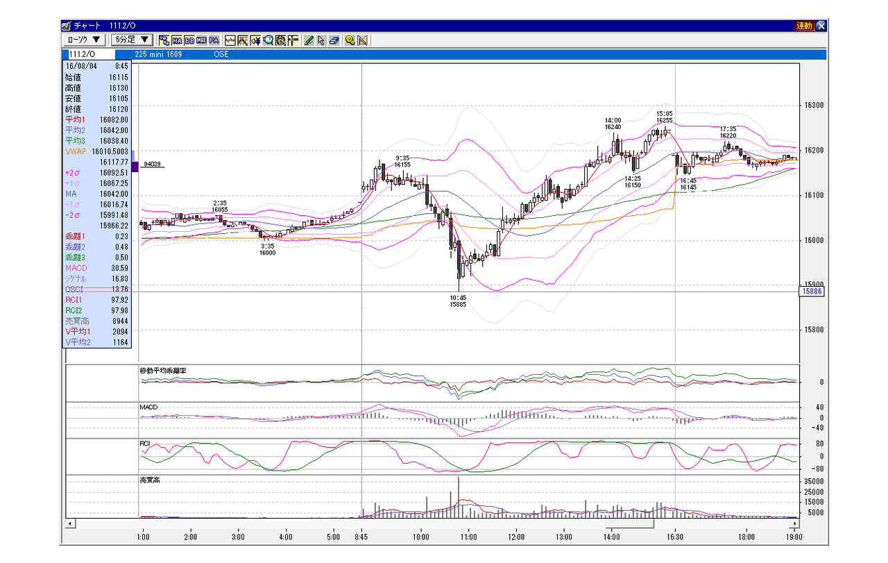 日経225mini 9月限 2016年8月4日 小幅GD、下昇パターン(100円以下前後GD) 後場上昇