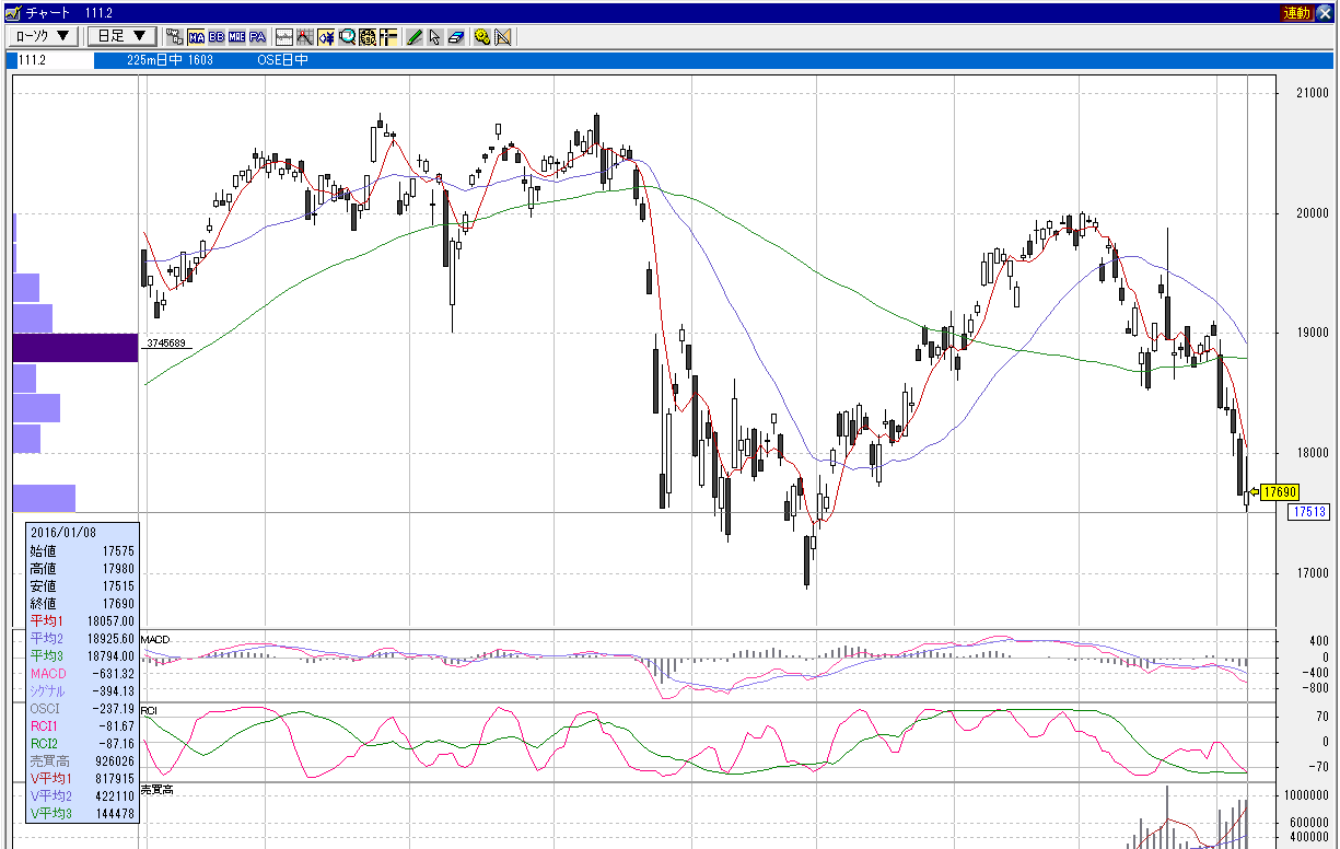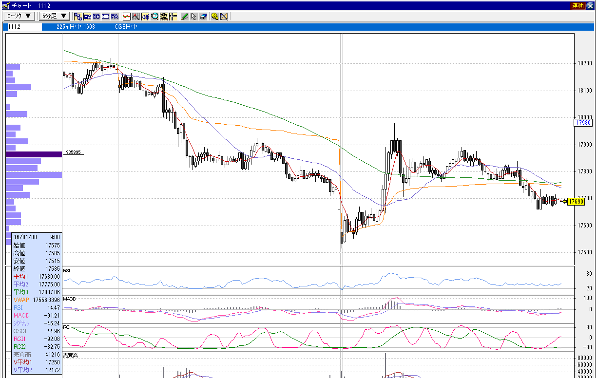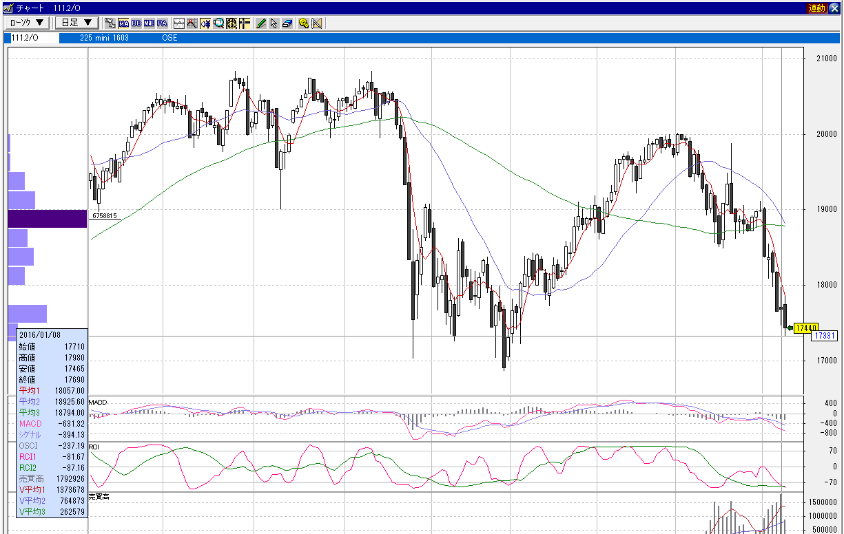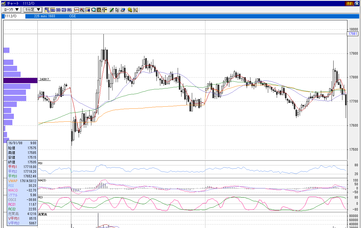 日経225mini 3月限 2016年1月8日 GD、上昇パターン(200円以下前後GD)イベント絡み 中国金利発表