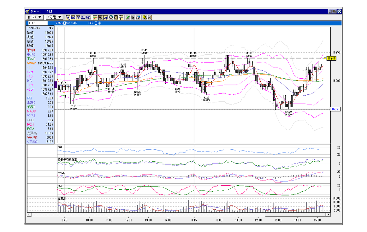 日経225先物 5分足チャート