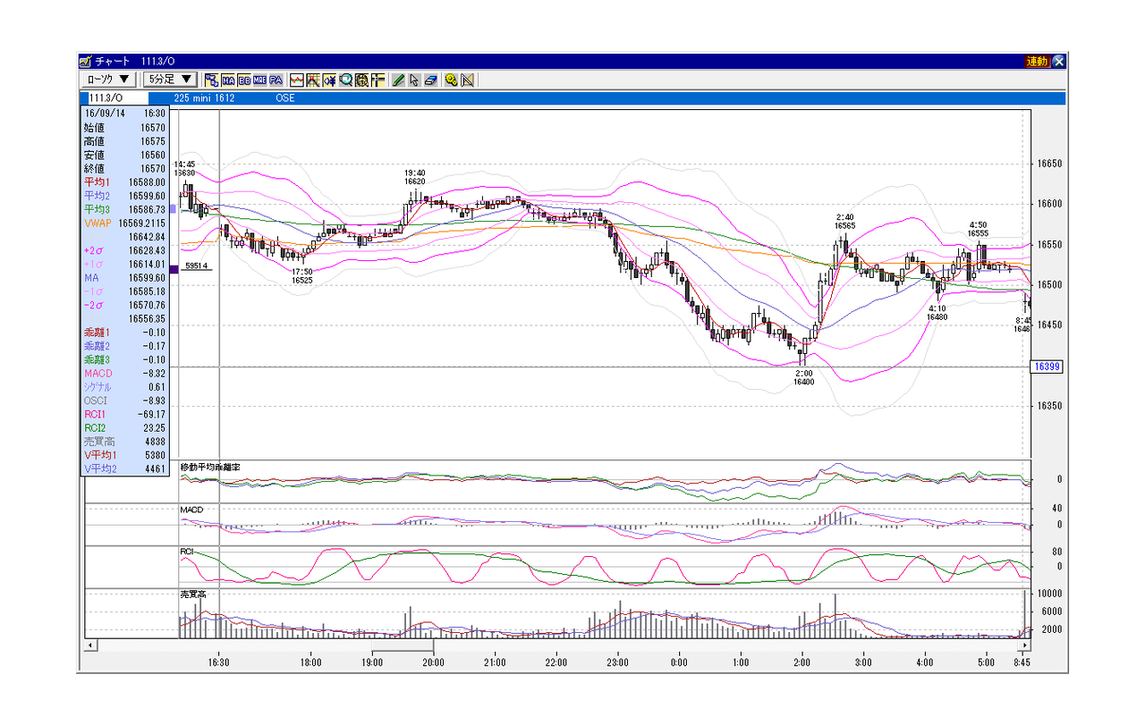 日経225mini 12月限 2016年9月13日 小幅GD、下昇パターン(100円以下前後GD) 上下レンジ 夜間