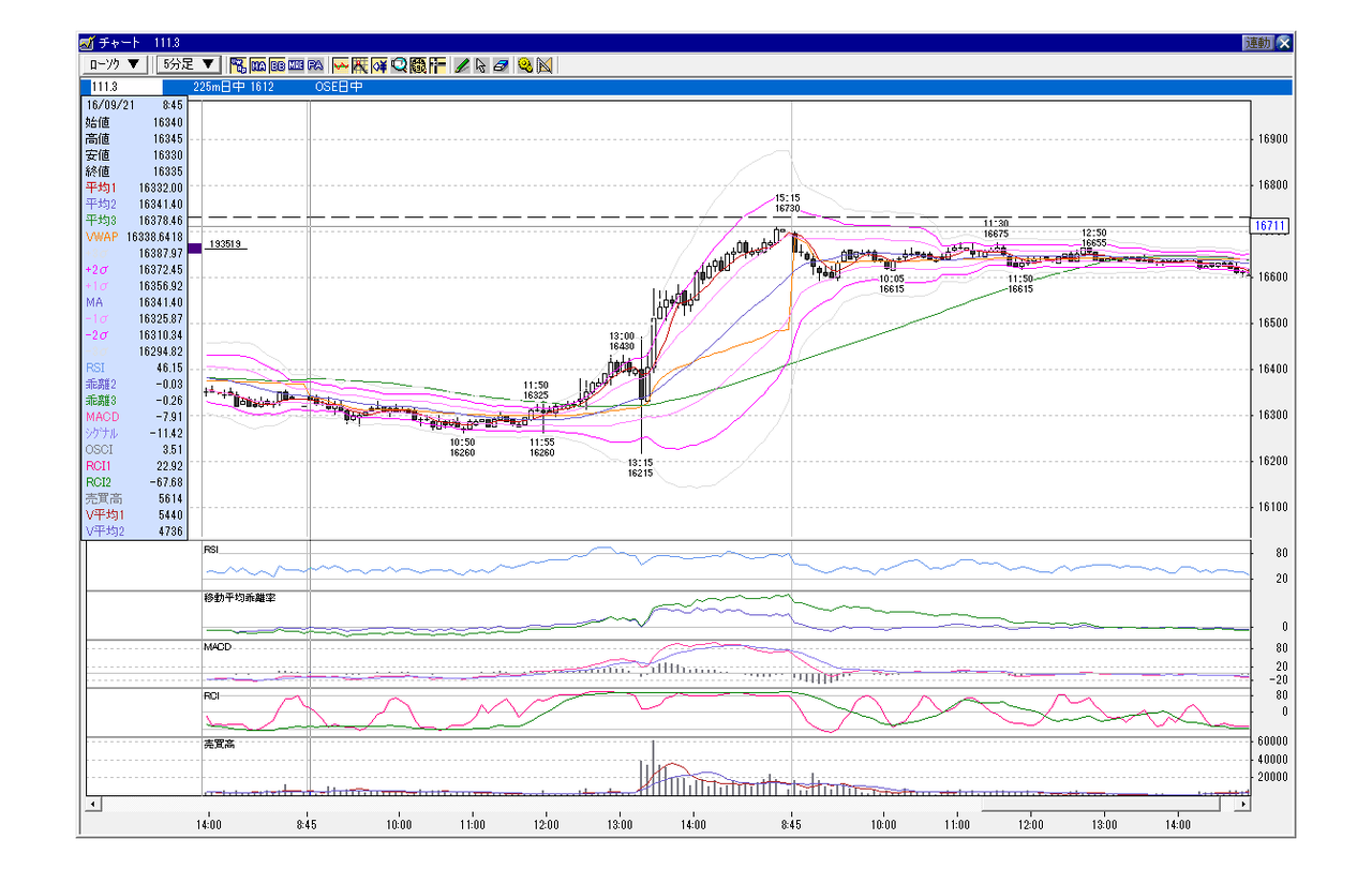 日経225先物 5分足チャート