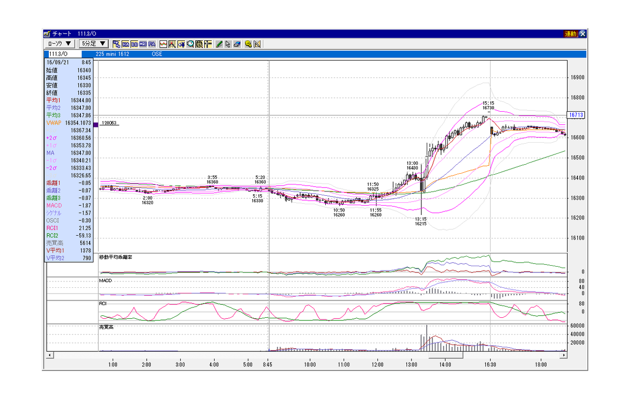 日経225mini 12月限 2016年9月21日 小幅GD、上昇パターン(100円以下前後GD) 日銀政策発表 イベント絡み