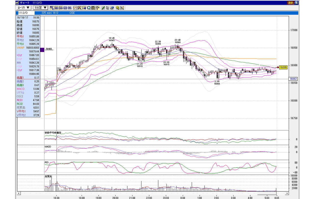 日経225mini 12月限 2016年10月14日 夜間 上昇パターン SQ通過後