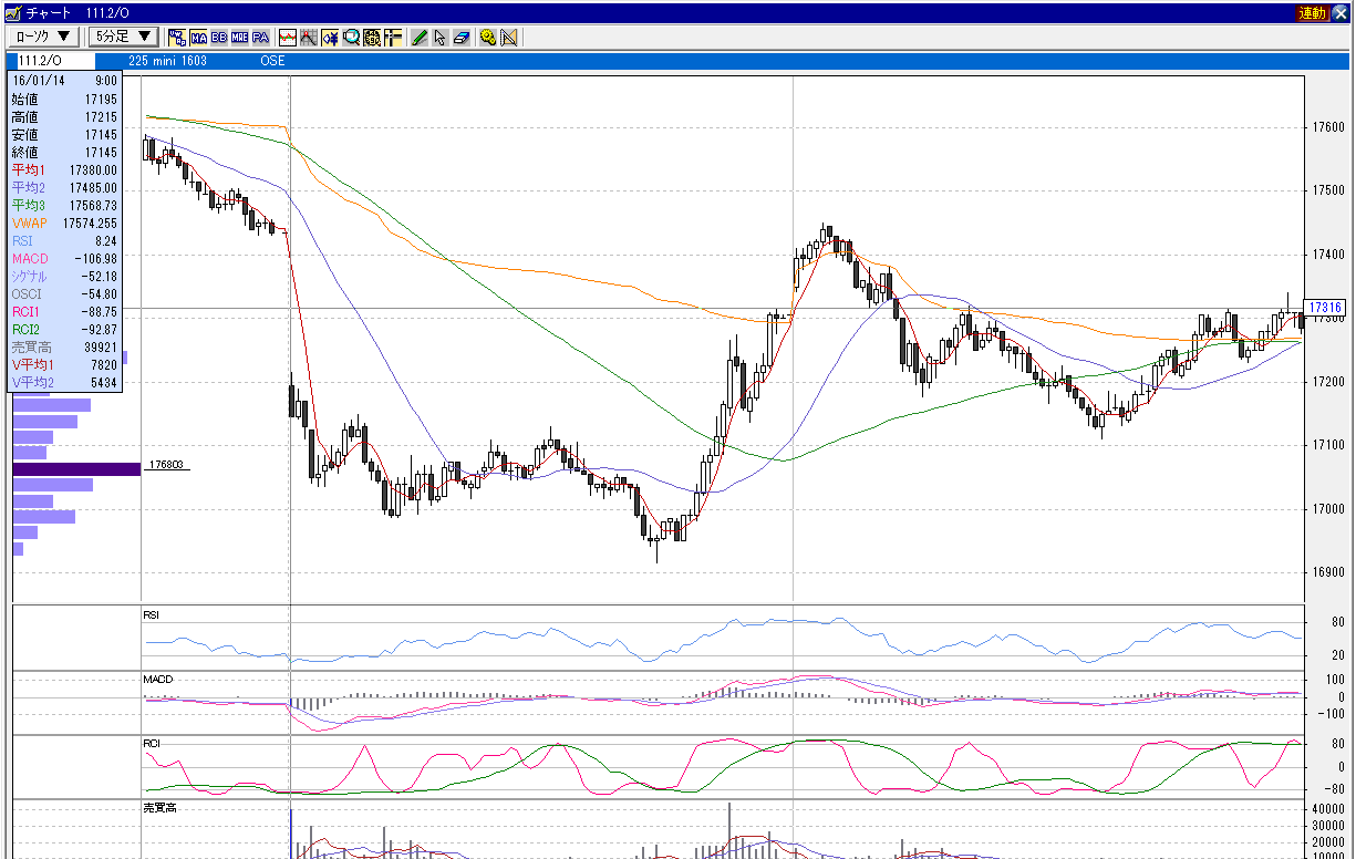 日経225mini 3月限 2016年1月14日 GD、上昇パターン(200円以下前後GD) 後場上昇 2016年1月14日 balenouser 未分類 17000円割れ後に、後場一気の上昇→夜間の前半下げパターン