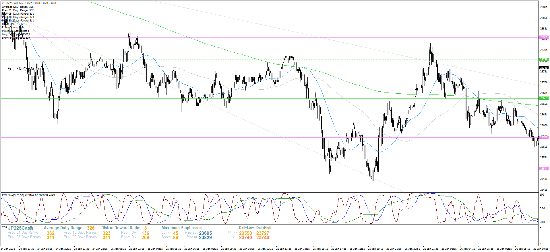 日中は寄りの高いところから売られたが午後からレンジとなり替え支えられ安値が僅かながらに切りあがっているのが見える。(ここで買いを入れた連中はナイトセッションですべて引っかかっている)