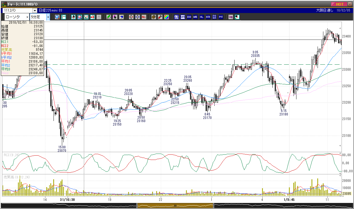 この日は23210円でエントリーし23265円で利確して就寝したが、明け方3時にFOMC(イエレン議長最後の声明!)に金利政策の発表があり引けまで再び底値まで売られる展開となる。これが翌日のGUでスタートする東京時間のポイントとなった。