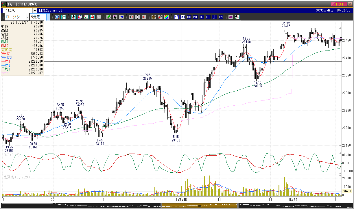 この日の前場の上昇前の動きと前日夜間セッションの上昇前の動き、それぞれのトレーダーの気持ちの動きの揺れは非常に似たものがあり興味深かった。ある一定の期間内に非常に似た動きがチャートに現れる事もひとつのリズムパターンとして覚えておくと非常に有効になる。