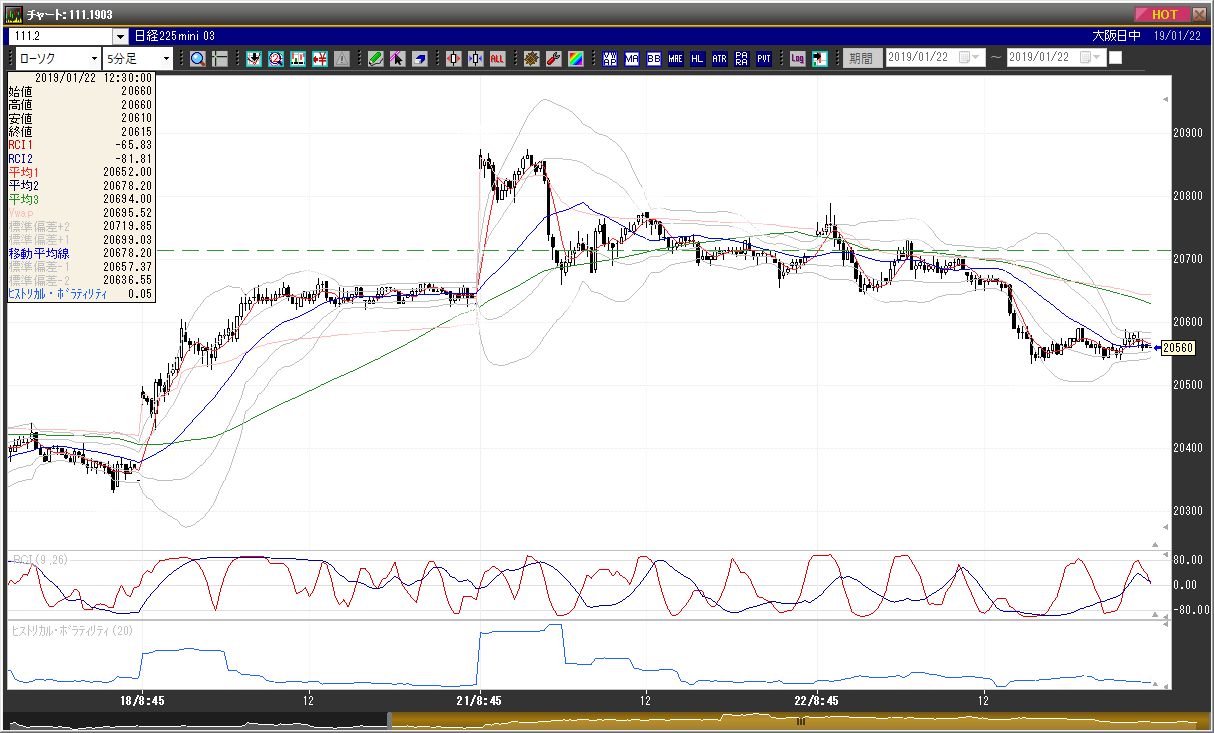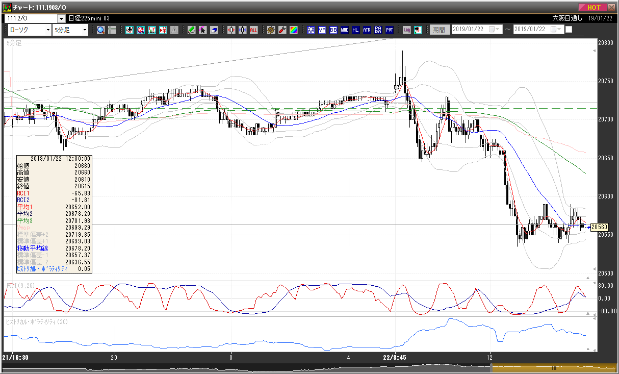 2019/1/22(火)日経225先物/チャート分析/2019年3月限
