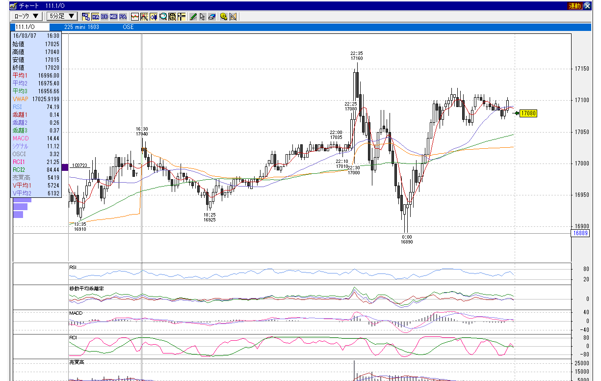 日経225mini 3月限 2016年3月4日 夜間 上昇パターン 雇用統計発表