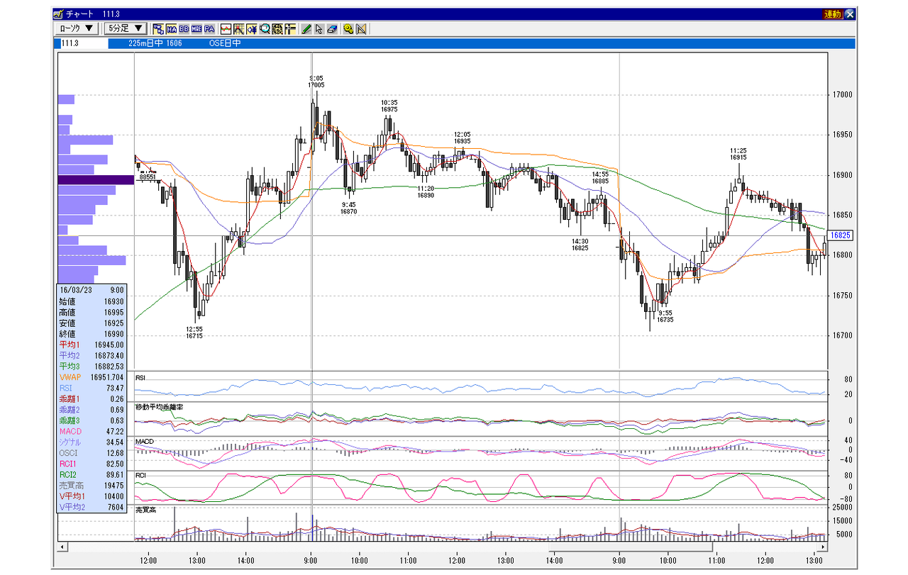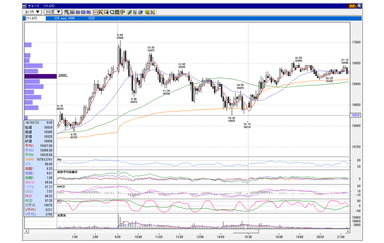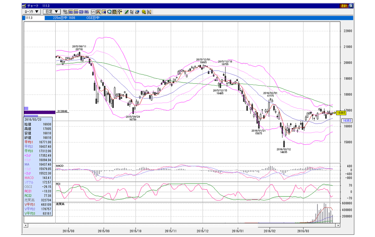日経225mini 6月限 2016年3月23日 小幅GU、下昇パターン(100円以下前後GU)