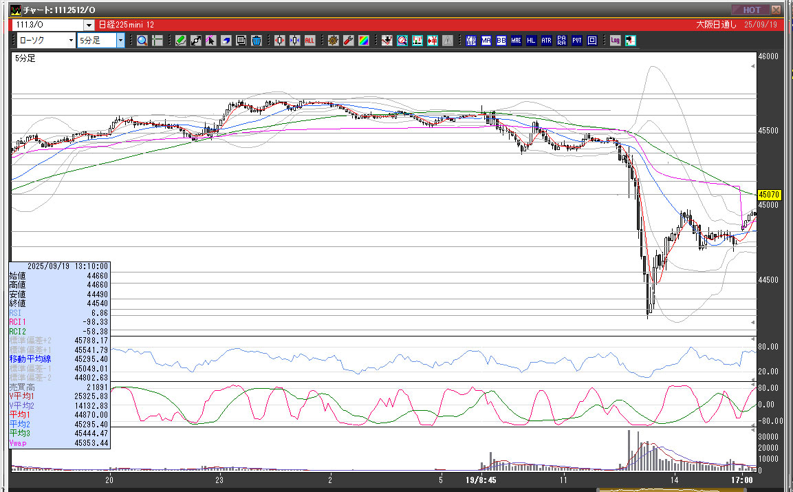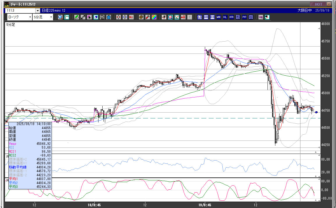 2025/9/19(金)日経225先物/トレード結果/チャート分析