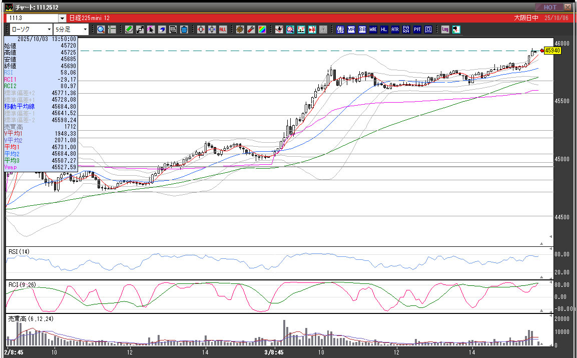| 2025/10/03 | 14:00 | 45660 | 45760 | 45660 | 45750 | 9089 | 100 | 90 |