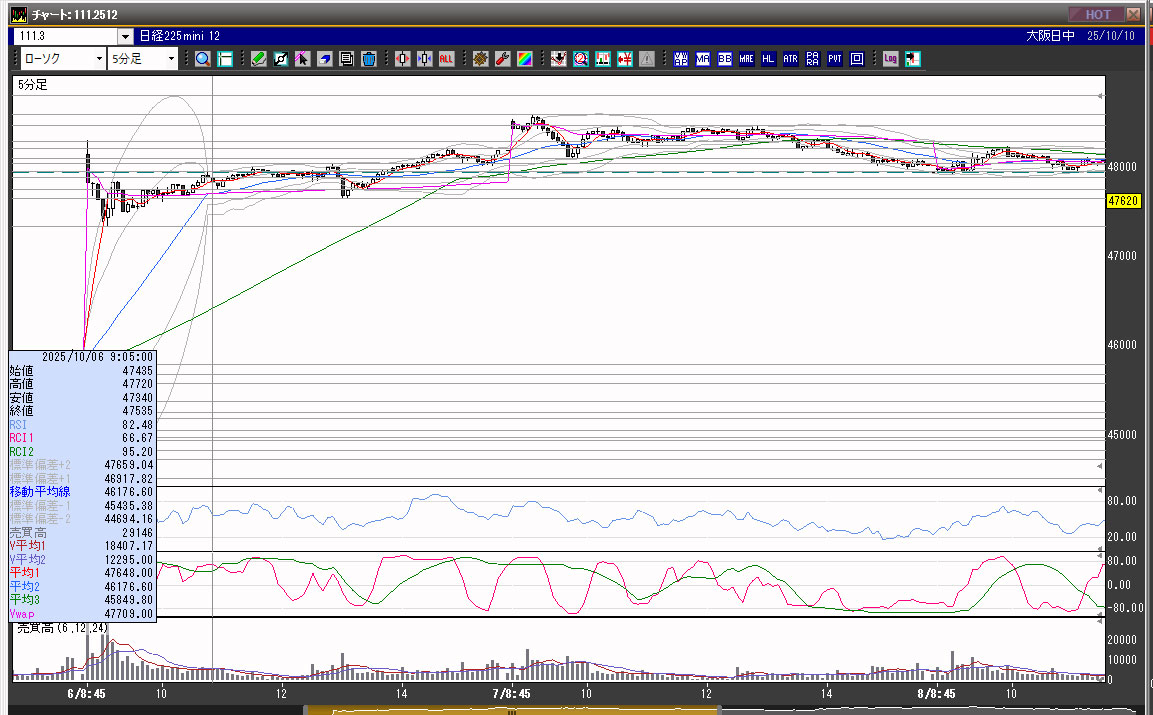 | 2025/10/06 | 12:30 | 47940 | 47965 | 47840 | 47920 | 17789 | 125 | -20 |
