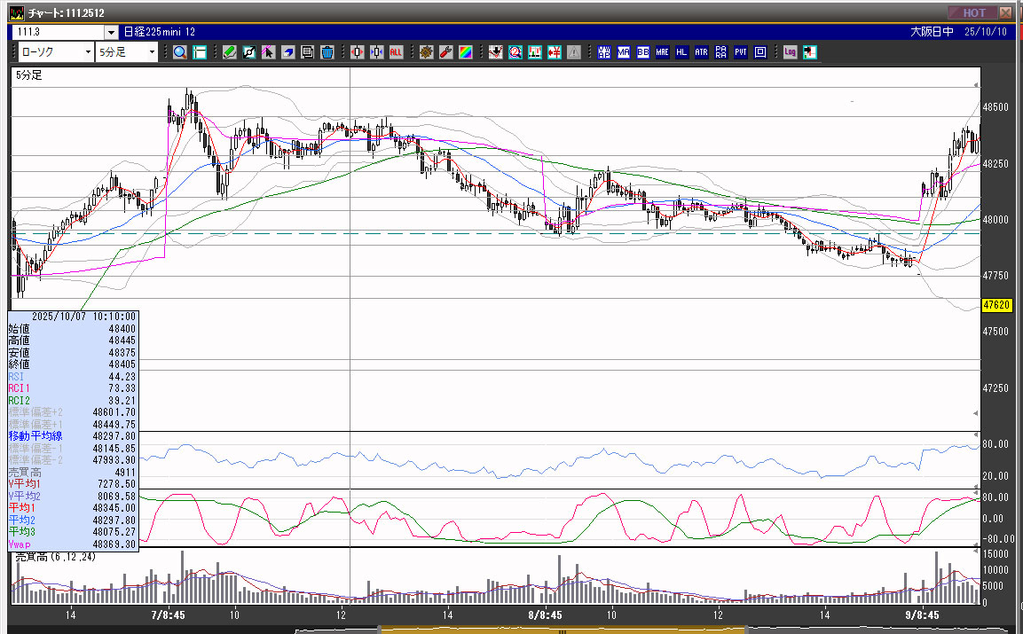 | 2025/10/07 | 9:45 | 48120 | 48370 | 48090 | 48315 | 26649 | 280 | 195 |
