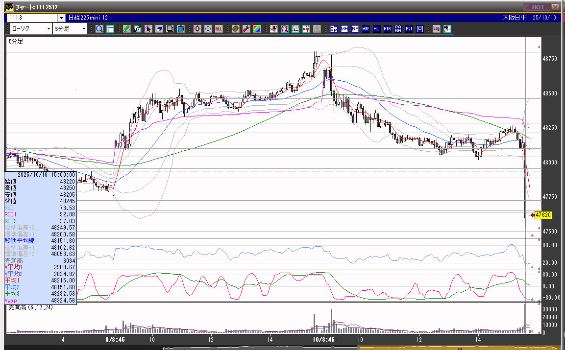 2025/10/10(金)日経225先物/トレード結果/チャート分析