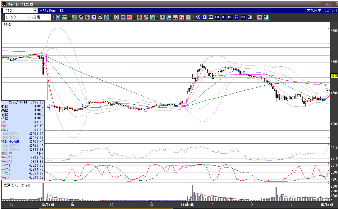 2025/10/14(火)日経225先物/トレード結果/チャート分析