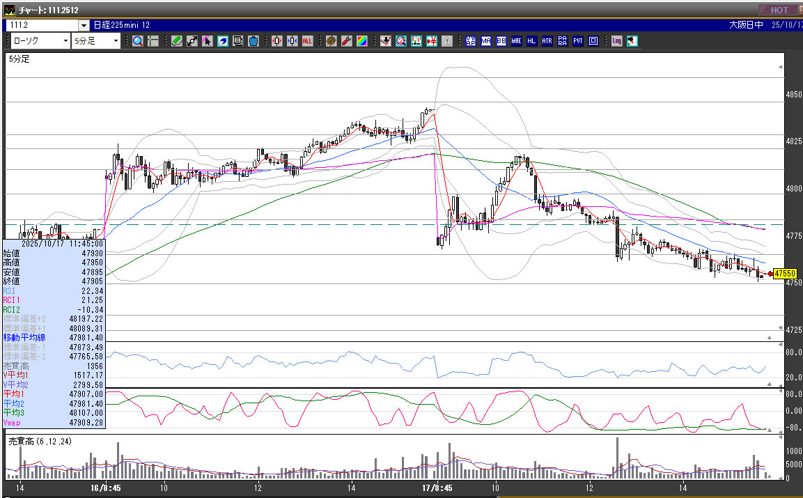 | 2025/10/17 | 9:15 | 47825 | 47875 | 47780 | 47820 | 12223 | 95 | -5 |